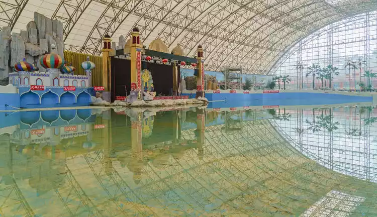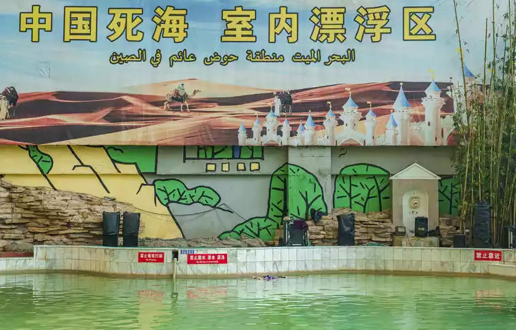 The Dead Sea in China is formed by seawater from an ancient salt lake over 3,000 meters underground with a history of 150 million years. Its salt content reaches 22% or more. The rich salinity gives the water in the pool tremendous buoyancy. Even people who can't swim can float freely on the water, just like the guy in the picture. You can even lie down and sleep. It has the same effect as the Dead Sea in the Middle East.