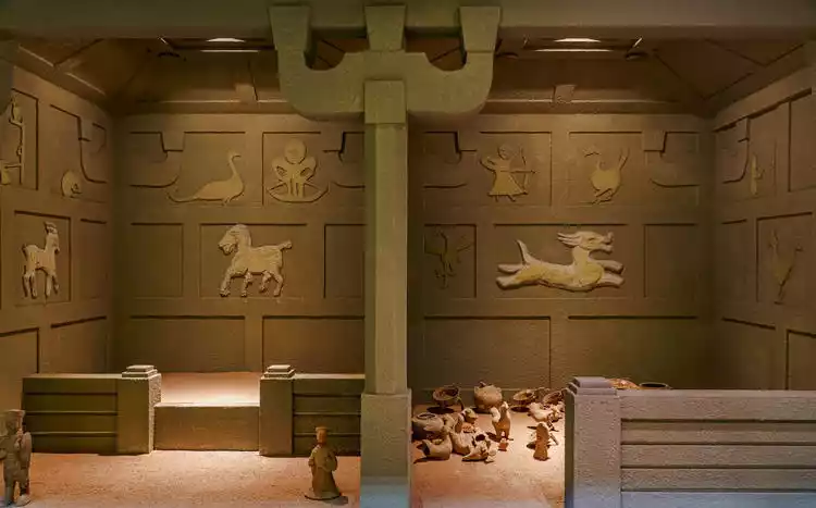 But what I am more interested in is the "Ancient Tomb Restoration Exhibition Area", where the Eastern Han Dynasty cliff tomb is reproduced in proportion, showing very clearly the shape of the cliff tomb from more than 2,000 years ago, and clearly reflecting the funeral customs of the Qi people of "living facing the water and burying in the mountains". The simplicity and luxury of the tomb is also a true reflection of the hierarchy of that period, and it is also another way to understand the civilization of that era.