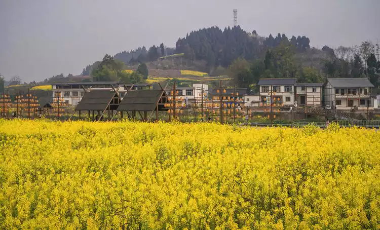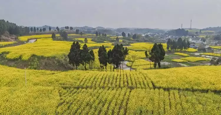 Visit Songjing Taoyuan Scenic Area in Daying, Suining, to see seas of rapeseed blossoms, peach blossom forests, and ride a miniature train! Located in Zhuotongjing Town, Daying County, Suining City, the Songjing Taoyuan Scenic Area is right next to the renowned Zhuotongjing Scenic Area, making it a convenient spot to visit both.