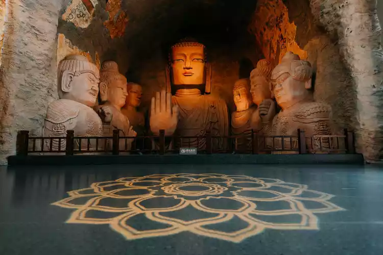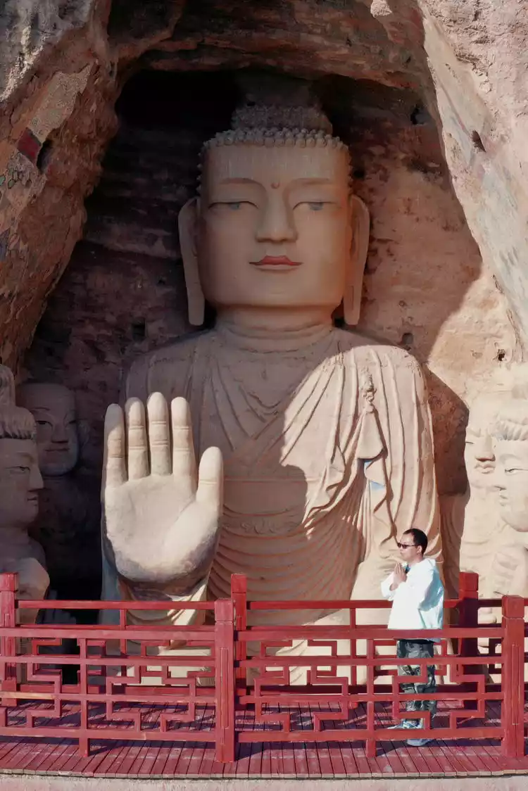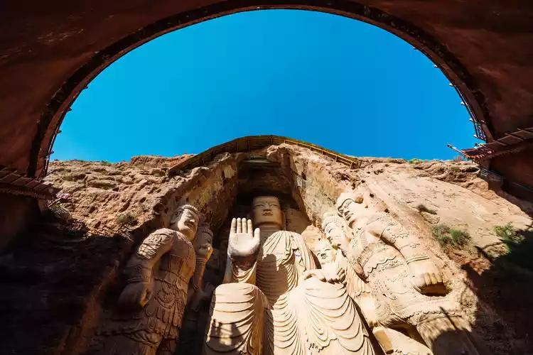 The Tianti Mountain Grottoes, also constructed during the Northern Liang Dynasty and boasting a history of over 1,600 years, are revered as the "ancestor" and "source of grottoes." The Tianti Mountain Grottoes currently have 18 extant caves. The main cave, the Great Buddha Cave, features a 28-meter-tall statue of Sakyamuni. The Buddha sits majestically, his demeanor surmounting the clouds and clouds, commanding the universe. His expression is lifelike and the sculpture is exquisite.