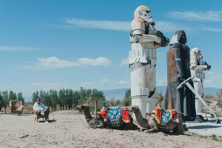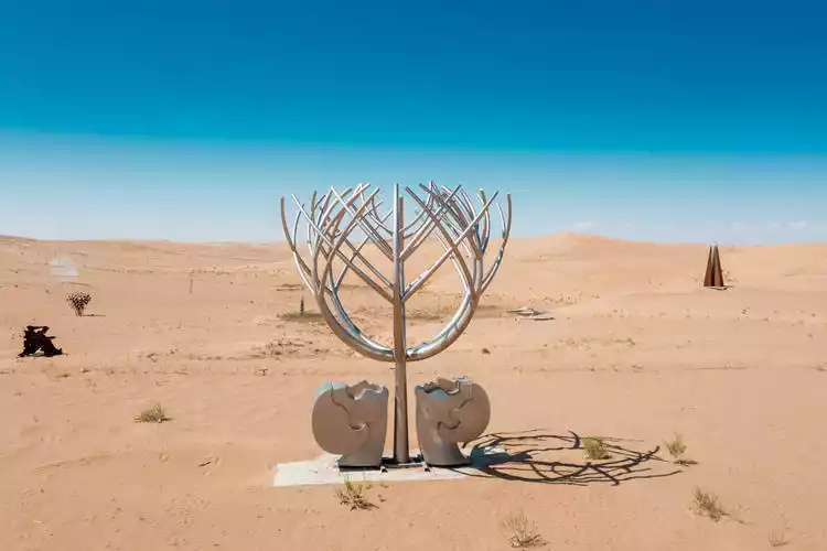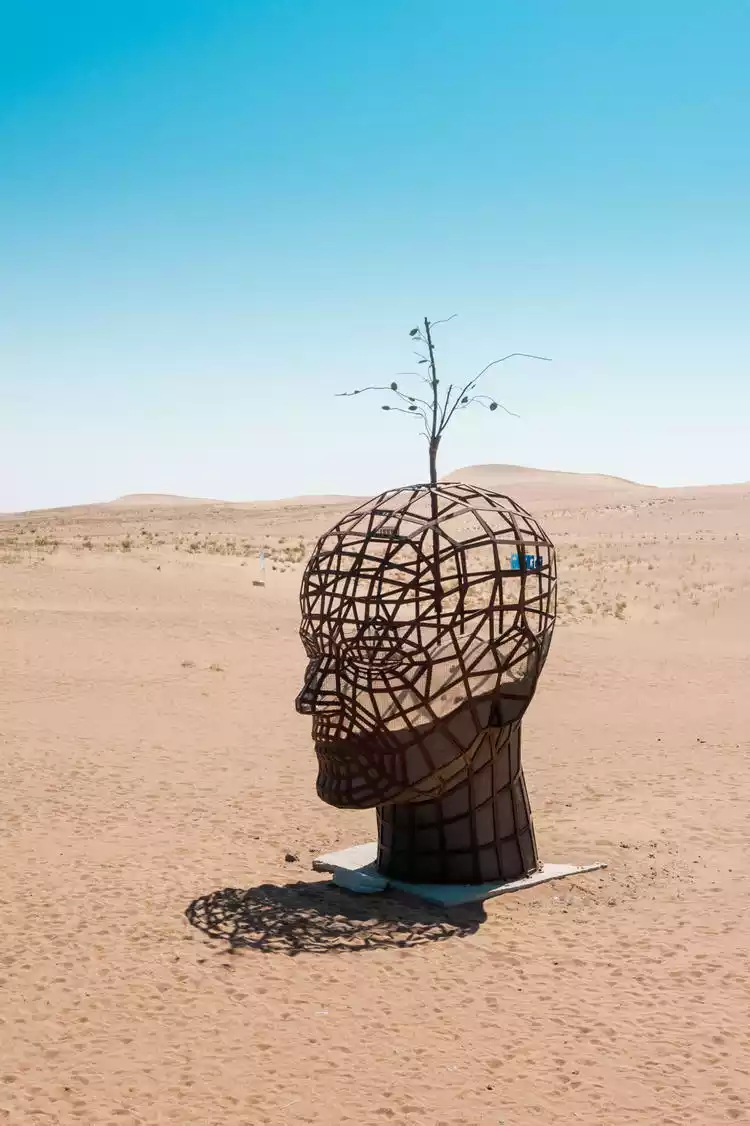 In comparison, the sand in the Minqin Suwu Desert Scenic Area is purer. Here, 132 sculptures by Chinese and foreign masters are gathered. Each one is moving, with a story and ingenuity. Whether photographed individually or with people in the frame, they are extremely interesting.