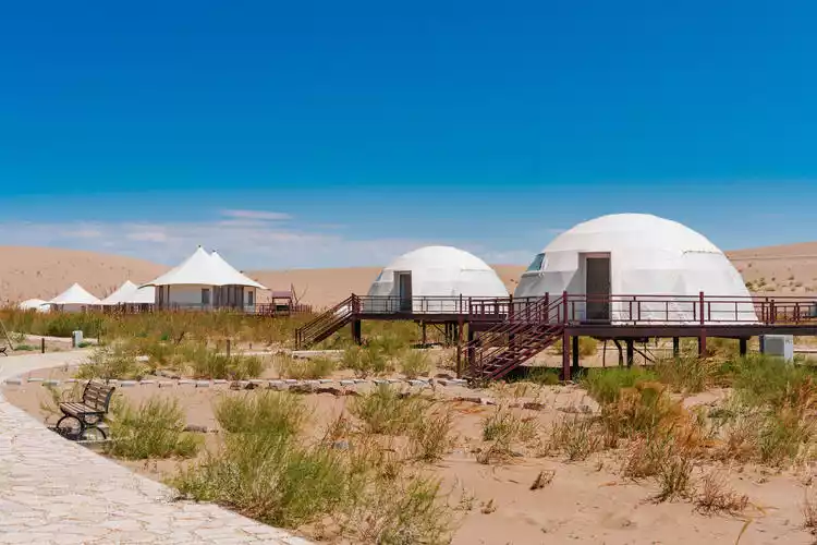 Wuwei Desert Park is more accurately described as a desert management demonstration park than a desert. Shaded by verdant trees and lined with poplar trees, it's also the birthplace of premium wine grapes, home to the Mogao Winery. Not only can you indulge in camel riding, but you'll also find a variety of popular photo spots to satisfy your photo-taking cravings.