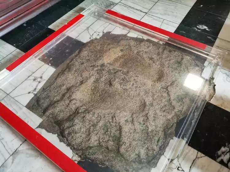 The ancient prayer platform houses the large footprints of Ksitigarbha Bodhisattva. In the past, Ksitigarbha Bodhisattva stopped here to recite the Avatamsaka Sutra and practiced meditation with great diligence, leaving his footprints embedded in the stone wall.