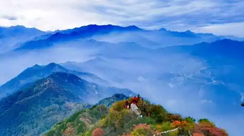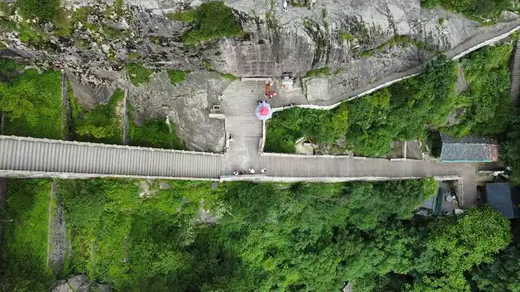 After visiting Huacheng Temple and Taibai Academy in the morning, you can take a short break and have lunch in the old street, then go to the lower cable car of Tiantai Scenic Area and take the cable car to Tiantai (this section of the mountain will take more than two hours). The cable car takes about ten minutes to reach the top of the mountain at an altitude of more than 1,000 meters. Then you can walk for seven or eight minutes to see the ancient scripture platform in the distance.