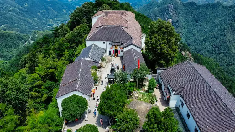 Tiantai Temple, the highest temple in Jiuhua Mountain, and Shiwang Peak, the highest peak, face each other, both with an altitude of over 1,300 meters.