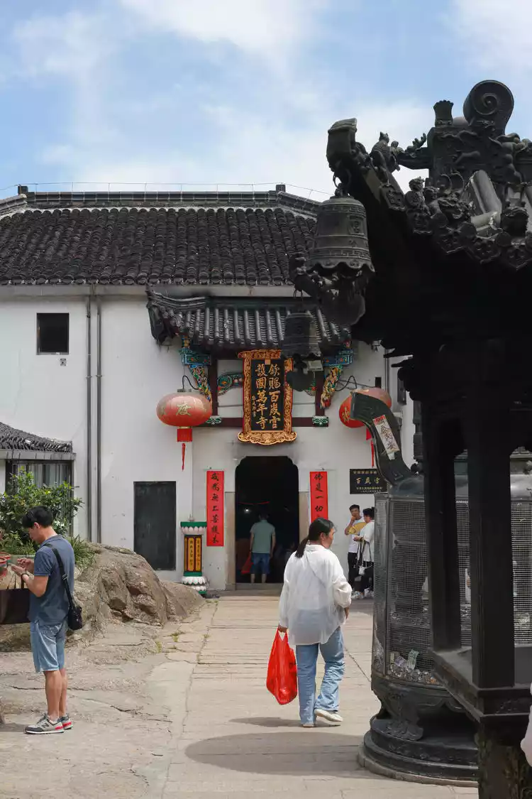 A five-minute cable car ride takes you to the mountainside where the Baisui Palace is located. There's a folk saying, "If you don't visit the Baisui Palace, your trip is in vain. Once there, everything will be a success." Baisui Palace, originally built during the Ming Dynasty, is located atop Motianling, Chaxiao Peak, on Jiuhua Mountain. Originally named Zhaixing Temple, it implies reaching for the stars. Later, during the Ming Dynasty, it was renamed Baisui Palace, honoring the centenarian monk Wuxia, who passed away at the age of 126.