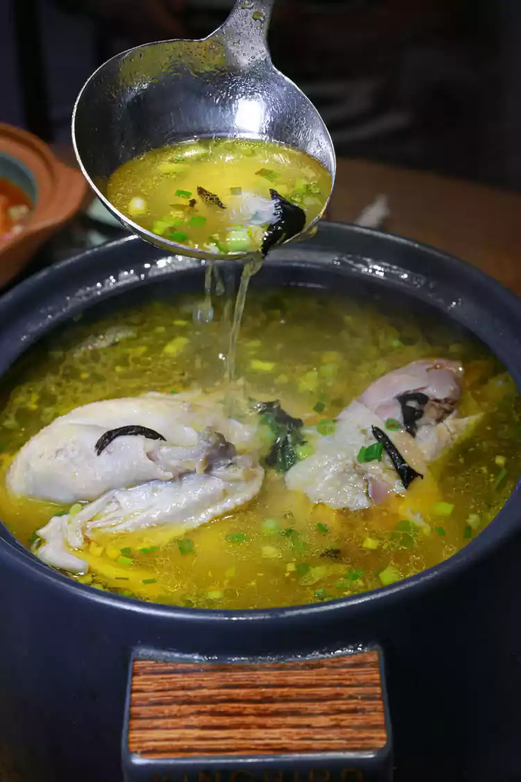 Stone ear mushrooms, a local delicacy from Jiuhua Mountain, are rich in amino acids and nutrients. Slow-cooked with local chicken, the broth is rich and flavorful, and the chicken is firm and flavorful. It can also be paired with the famous local fried rice, adding flavor to the broth.