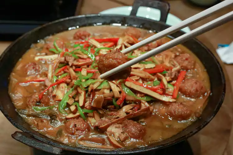 Lingyang Yipin Pot, this local dish originated from the surrounding Lingyang. It uses dried beans, dried bamboo shoots, day lily, and sweet potato flour as the base, and is topped with pork belly and meatballs. The flavors of various ingredients blend together, the taste is rich, and it is also very delicious.