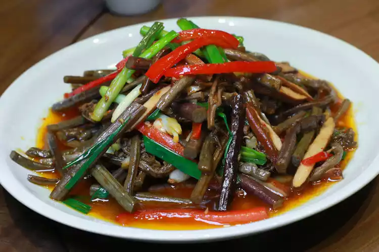 Jiuhua Fried Polygonatum is also a very distinctive local dish. Polygonatum is a local treasure and a specialty of the Jiuhua Mountain area. Although it has no taste, it is very nutritious and good for health.