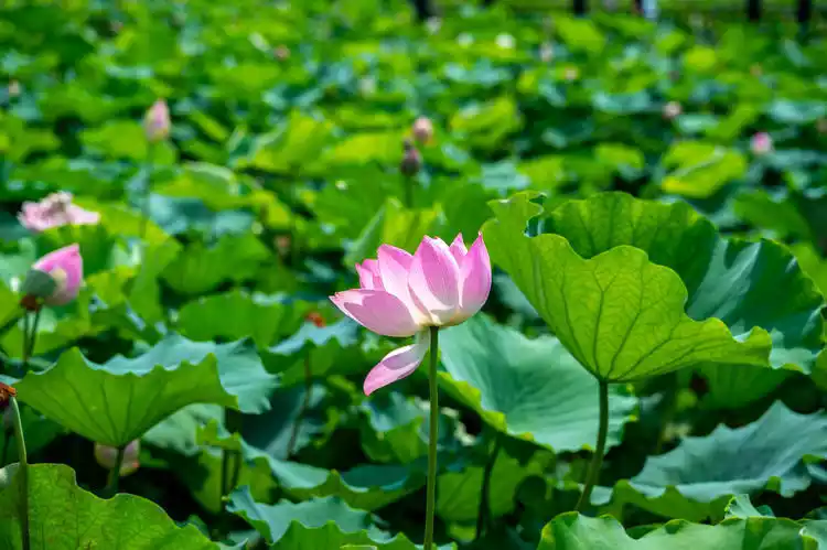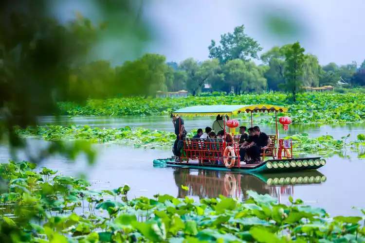 Baihe Garden is the largest and most beautiful ornamental lotus pond in Lotus Marsh, covering an area of more than 150 acres and owning more than 50 ornamental ponds. Hundreds of lotus varieties bloom here, including the gracefully dancing Dancing Lotus, the affectionate Deep Affection Lotus, and the Purple Lotus Coming from the East to welcome distinguished guests. Each lotus has a variety of postures and competes for splendor.