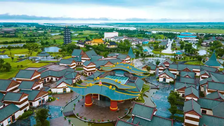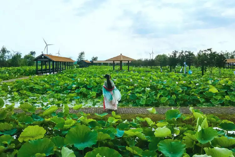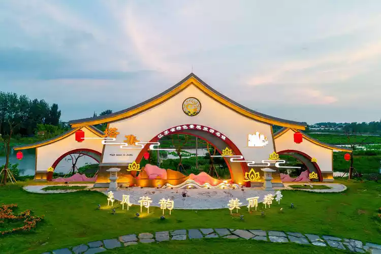 Nestled on the shores of beautiful Gaoyou Lake, the Lotus Pond Scenic Area, surrounded on three sides by the lake, boasts a beautiful ecological environment. It is a National 4A-level Tourist Attraction and a National Agricultural Ecological Scenic Area. Every summer, the Lotus Pond transforms into a scene of wind-swirled lotus leaves, rolling green slopes, and blooming lotus flowers, creating a fairyland for visitors and a breathtaking spectacle for photographers.