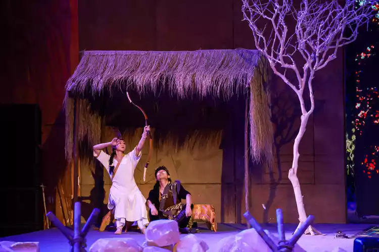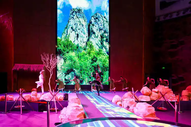 Anyone who has visited Yao Xiangguo will undoubtedly be deeply impressed by the San'a Love Theater's performance of "Young Emperor Yao." Set against the backdrop of primitive tribal life during the Yao and Shun eras, the four-act play, titled "The Birth of Emperor Yao," "Raising Emperor Yao in Taji," "Farewell to His Son in Qingdu," and "Huo De Becomes Emperor," vividly depicts the story of Emperor Yao's birth and growth in San'a, located on the south bank of the Huai River (present-day Taji Town, Jinhu Lake).