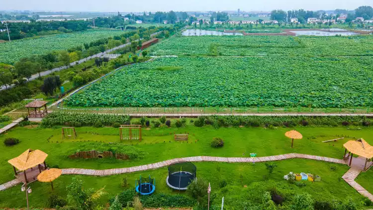 I still remember the scene of brilliant yellow rapeseed blossoms in full bloom on my last visit to Huangzhuang. Now, midsummer has arrived, and the village pond is blanketed with lotus leaves, bringing to mind the beautiful poem: "Lotus leaves reach the sky, their green is boundless; lotus blossoms are a striking red in the sunlight." A long corridor, the essence of Huangzhuang, offers a stroll through the ever-changing scenery of the four seasons. The lawns on either side offer opportunities for games, barbecues, camping, picnics, and lotus viewing—perfect for families, couples, and even families.