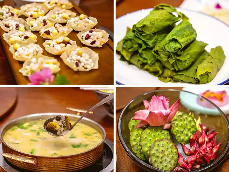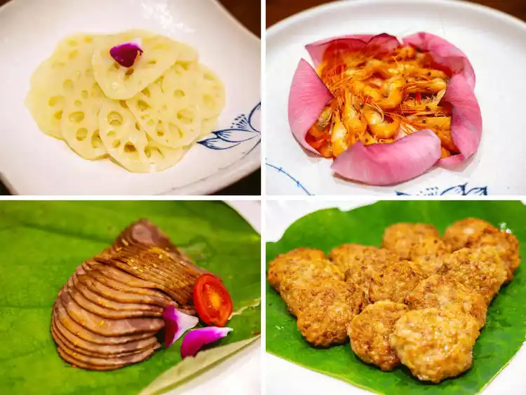 Speaking of Jinhu's unique delicacies, besides crayfish, the Lotus Banquet is also a must-see! The beauty of the lotus lies in the eyes of literati and the palates of foodies! The Lotus Banquet at Lotus Pond uses local ingredients, fresh lotus roots, stems, and leaves, meticulously crafted to create dishes like Pan-fried Lotus Root Cakes with Moonlight over the Lotus Pond, Lotus-scented Glutinous Rice Rolls, Crispy Lotus Petals, Sweet and Sour Lotus Root Slices, Braised Pigeon with Lotus Root and Red Dates, and Lotus Petal-Marinated River Shrimp. Not only are they visually appealing, but they're also unforgettable.
