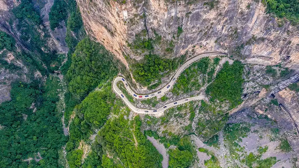 The Guoliang Cliff Road is the most famous of the Southern Taihang Cliffs. Those who haven't been to the Taihang Mountains find it difficult to comprehend the awe-inspiring sheerness of the cliffs. Guoliang Village, nestled atop this cliff, has been hailed as "the ninth wonder of the world," "one of the world's ten most dangerous roads," and "one of the world's eighteen most extraordinary roads."