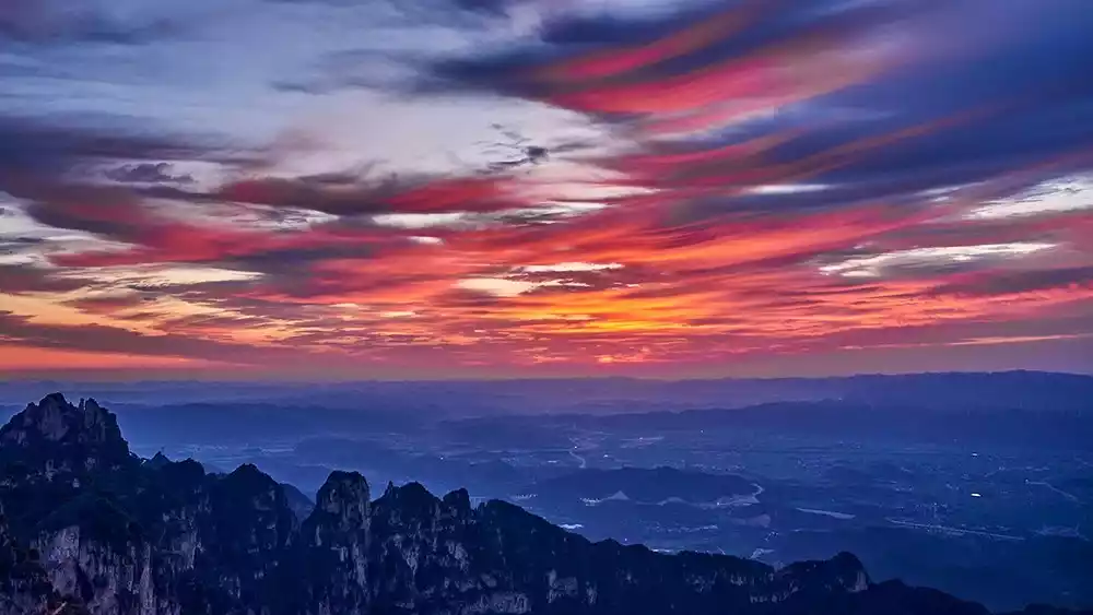 The most spectacular sight of Wangmangling is sunrise. On clear days, the peaks are immersed in a vast sea of clouds that resembles fish scales. From gray to colorful clouds to shining golden scales, the red sun rises slowly, and for a moment, the mountains are bathed in a myriad of rays of light, with a magnificent splendor that surpasses all other peaks.