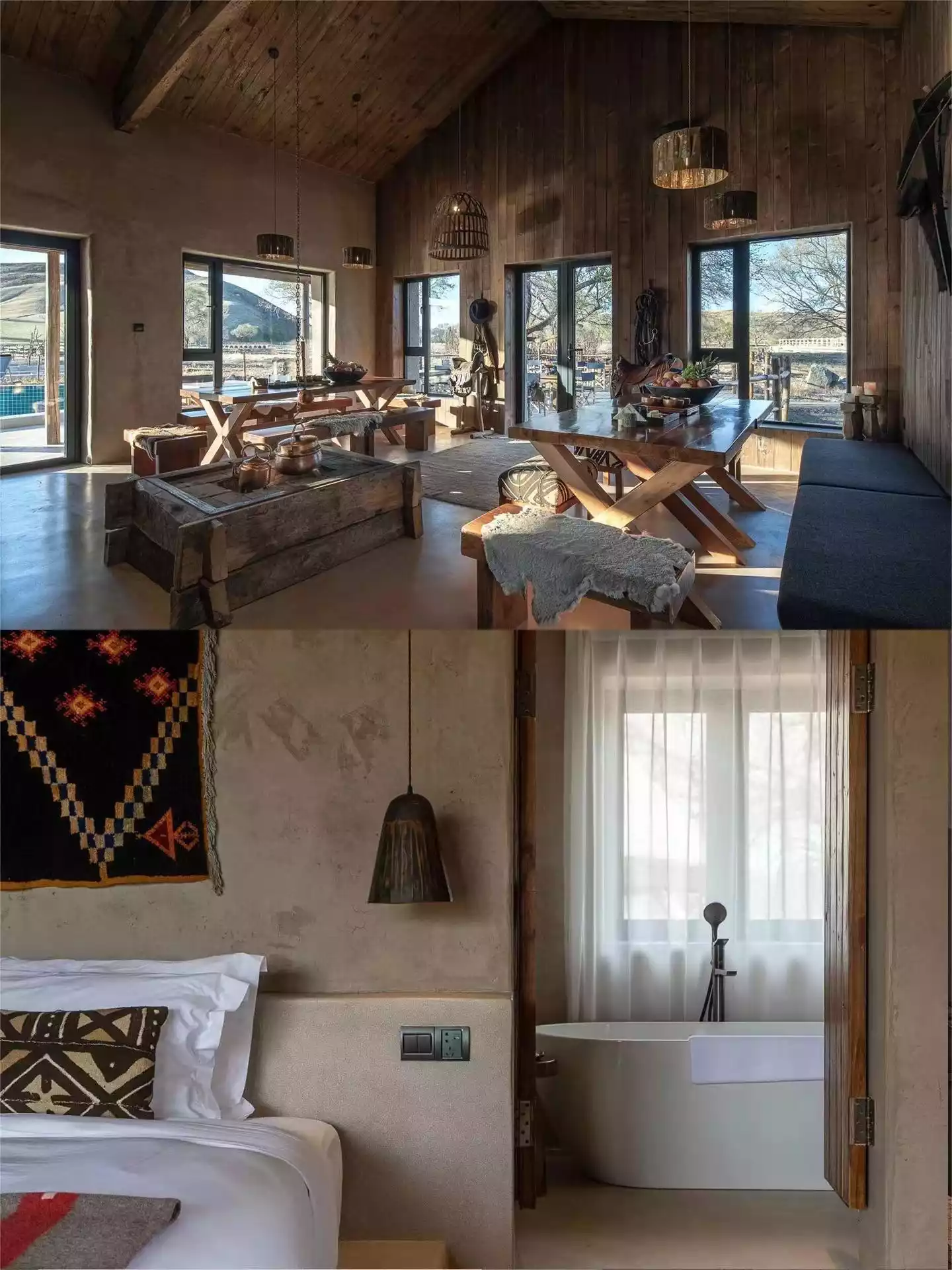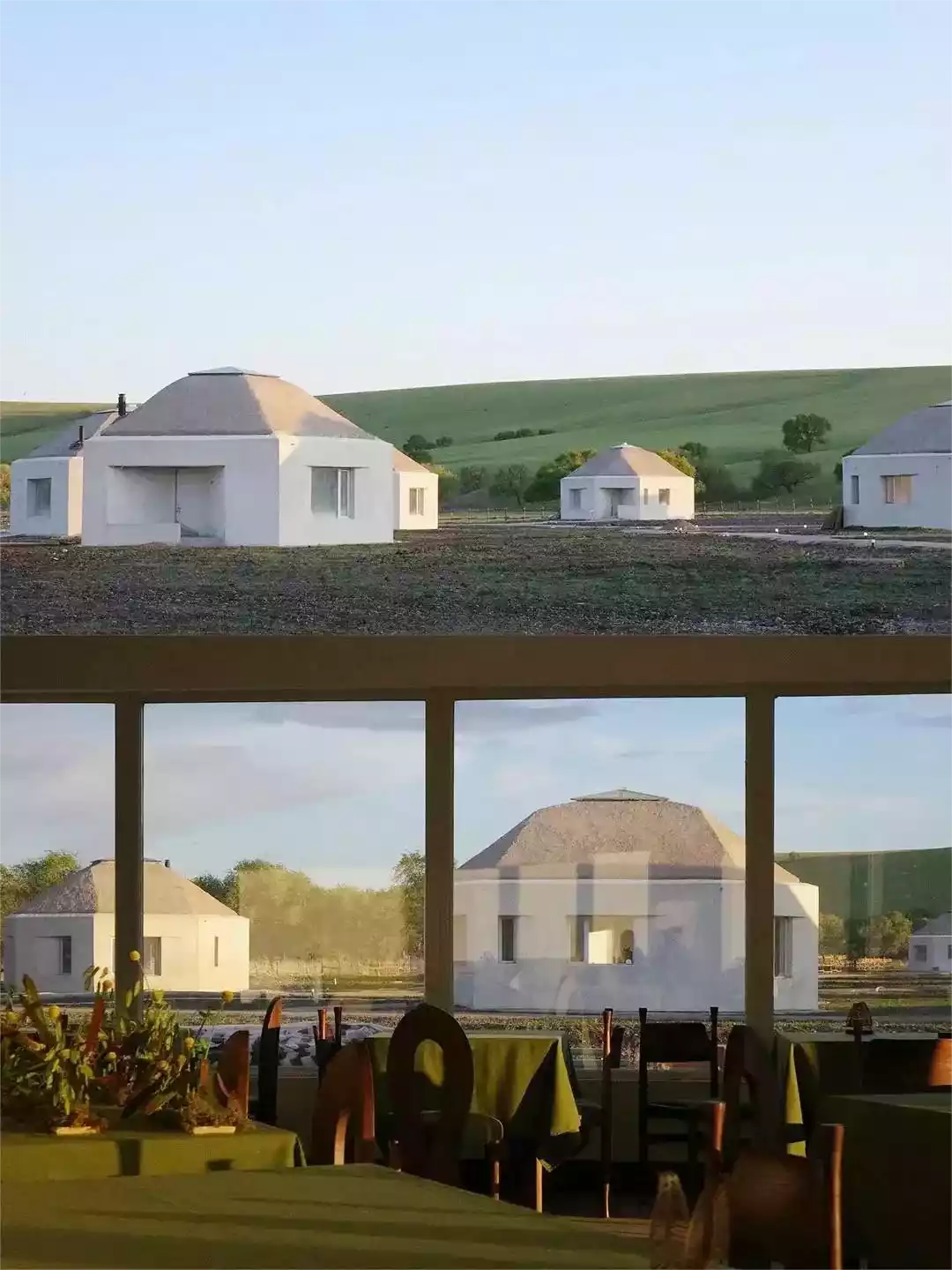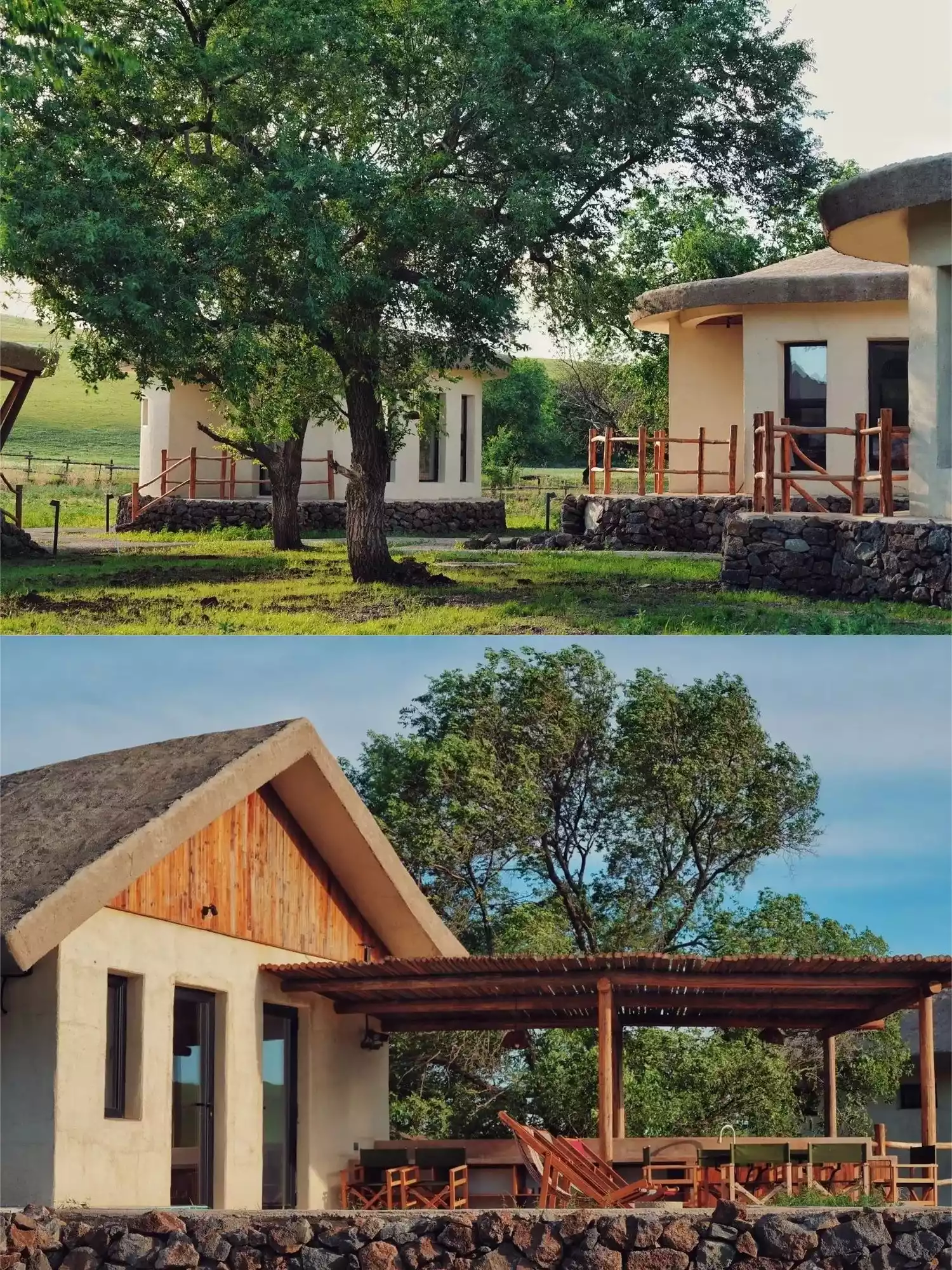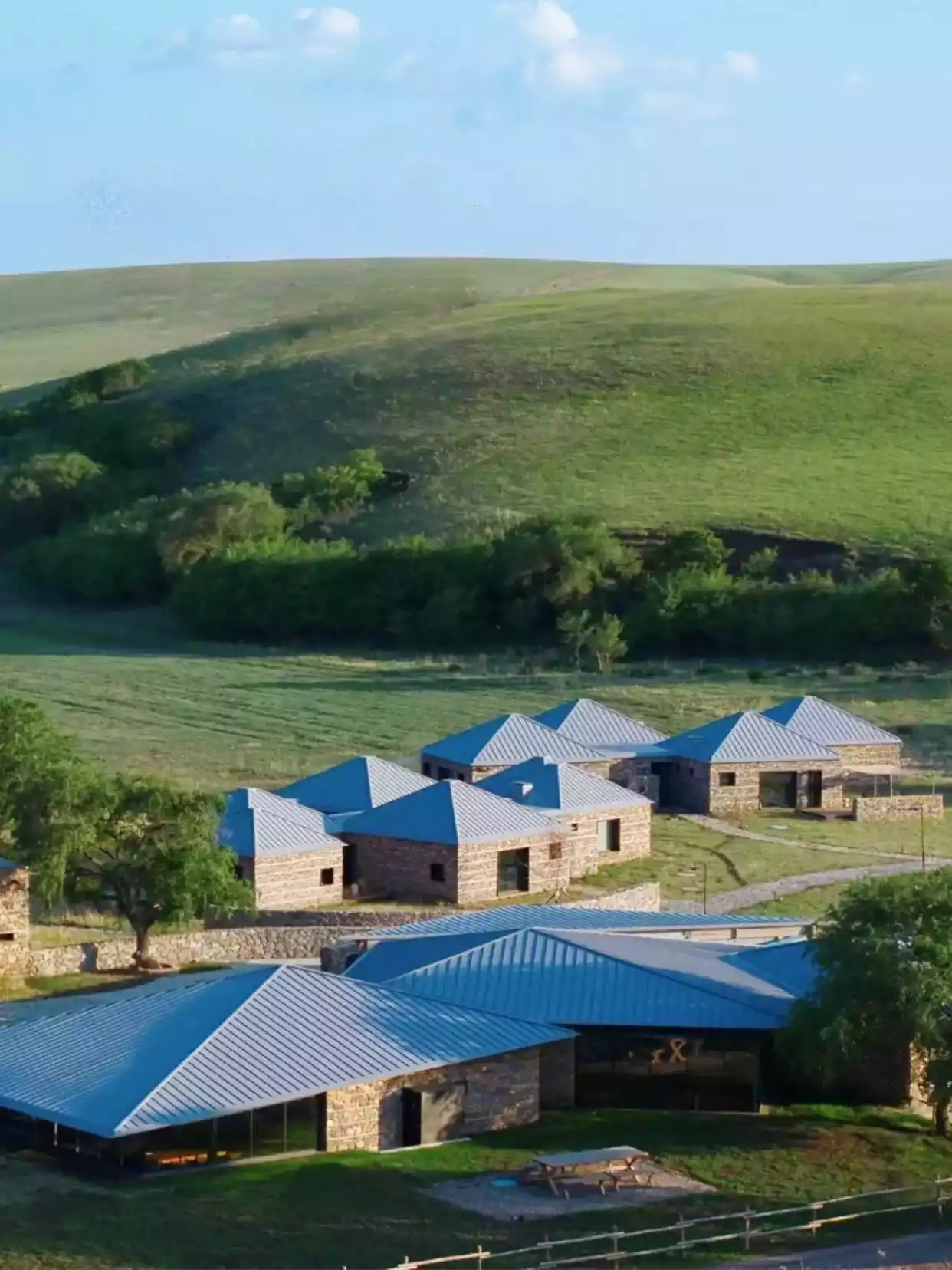The unique stone house design features 5 villas with 16 guest rooms and a rich array of amenities, including WILDS, LOSTCAFE, and a snow-capped hot spring bath. Surrounded by cattle and sheep, surrounded by rolling grass, this idyllic rural life offers endless leisure and natural comfort.
