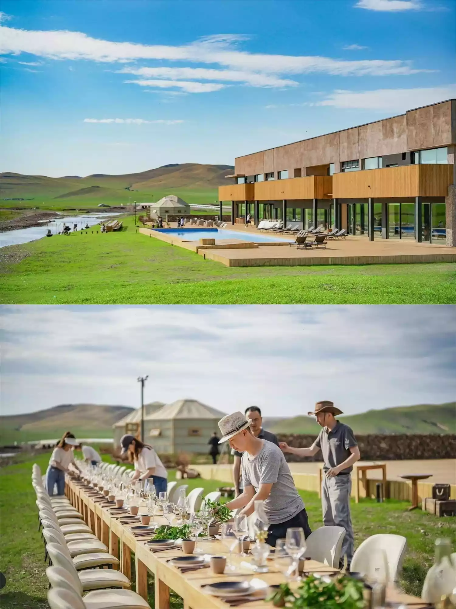 Located on the east side of the resort, the hotel boasts 35 guest rooms. The ground floor features a communal dining area, a yurt restaurant, a multi-functional conference room, and two outdoor swimming pools. The hotel also features a special valley dinner, where guests can savor the charm of the grasslands while enjoying a glass of wine.