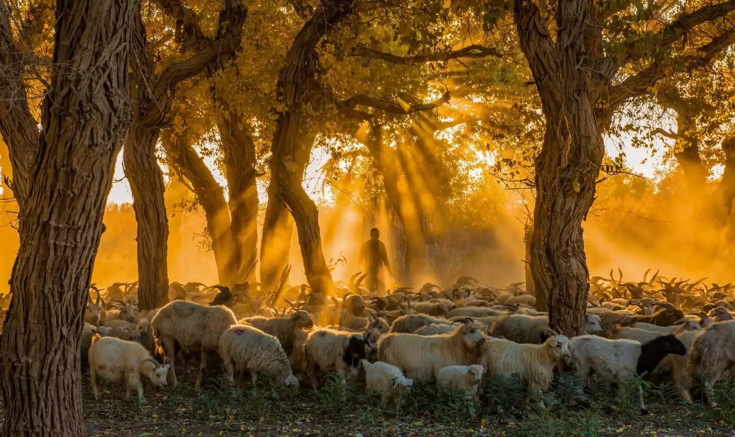 In Uyghur, the name for the poplar tree is Toklak, meaning "beautiful tree." Uyghurs are known for their direct and romantic naming. The upright figure of the poplar tree in the desert is both beautiful and full of a sense of freedom, bursting with vitality.