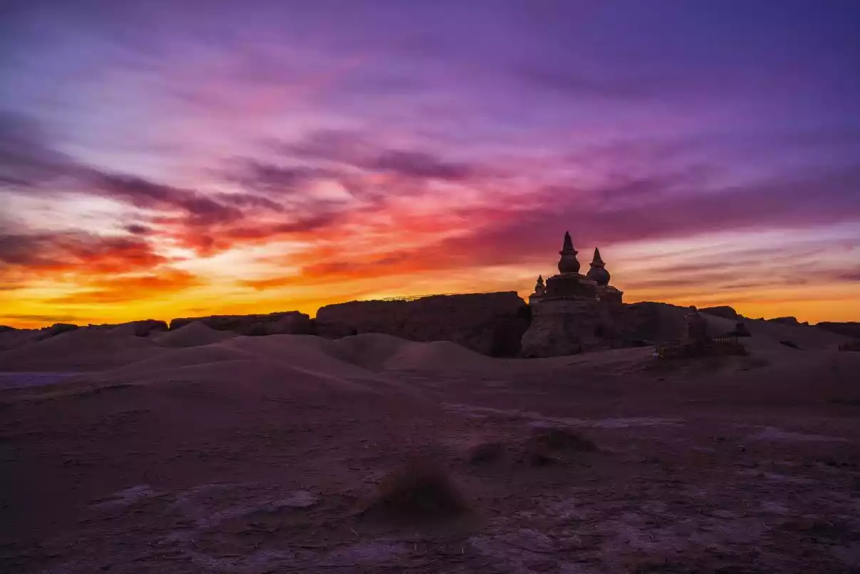 The Black Water City, buried in the quicksand, is the most complete and largest existing ancient city ruins on the ancient Silk Road. Fans of "Ghost Blows Out the Light" must be familiar with this name. Black Water City, also known as the "City of Death", overlooks the tall walls surrounding Black Water City from a distance. Although it has experienced years of wind erosion, it still looks very beautiful.