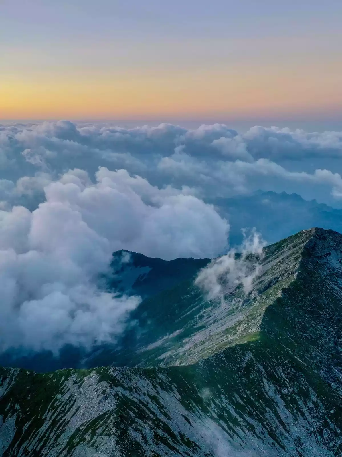There is a mountain with the grandeur of "sea of clouds rolling"