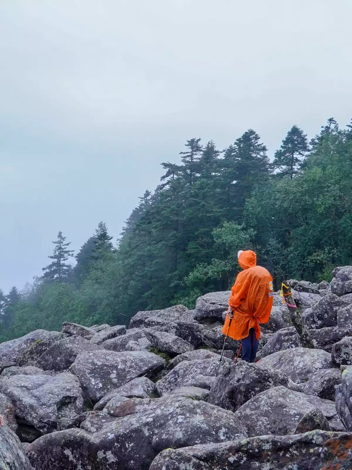 After leaving Sanhegong Waterfall, we entered a section of road that continued to rise. We had to take a break after walking a short distance. We also passed by the "Huixin Stone". It felt like every mountain in the Qinling Mountains had a Huixin Stone. It was indeed too tiring to climb higher. There were huge rocky hills and primeval forests all along the way. However, the continuous rise made it impossible to enjoy the scenery. When we arrived at Laojun Temple, we could see the iconic ridge and sea of stones of Taibai Mountain!