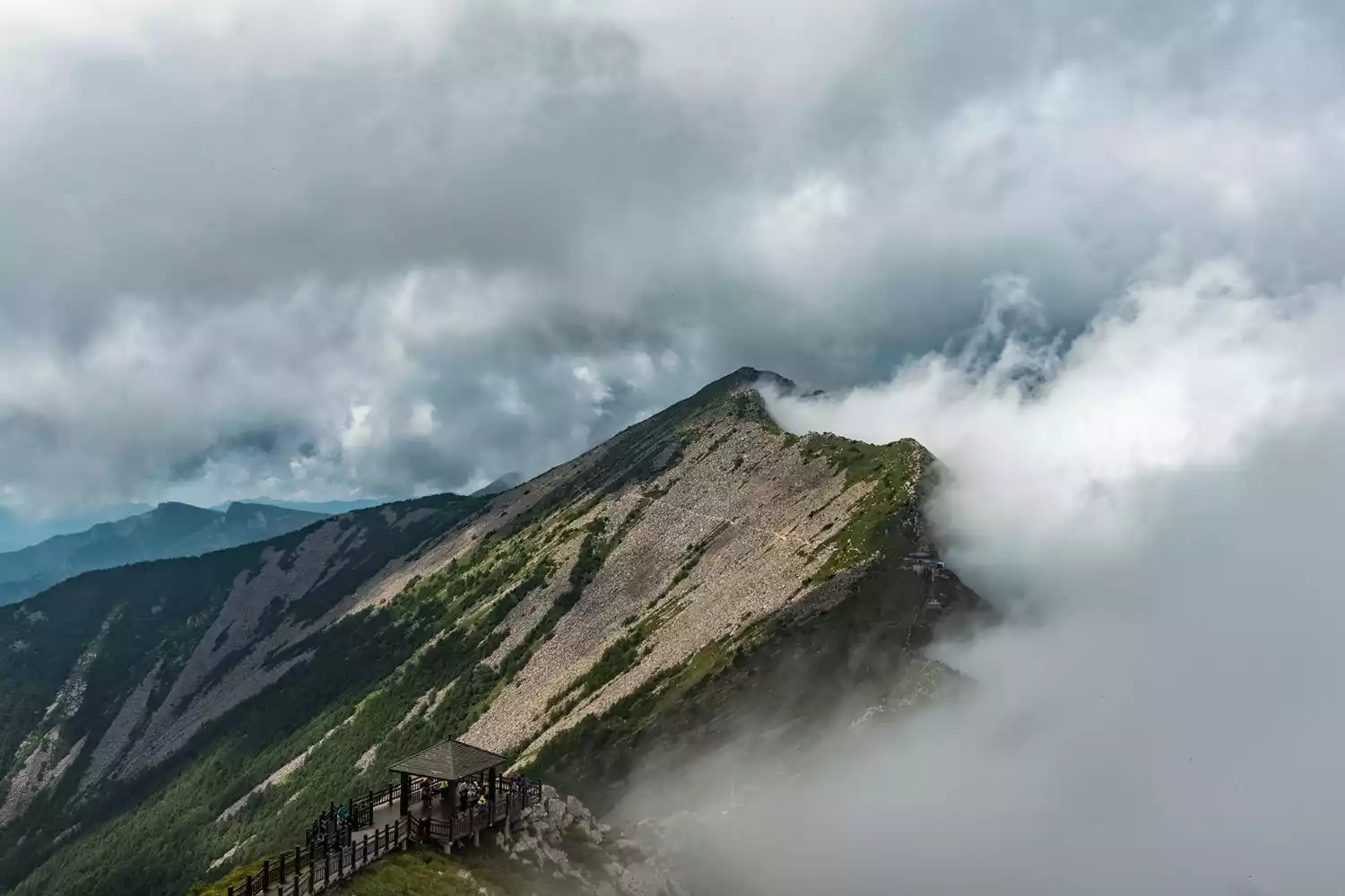 This is the knife-edge ridge of Taibai Mountain. One side of here is the south and the other side is the north. Because this is the geographical landmark of the north-south dividing line of China, it is a place where tourists often check in!