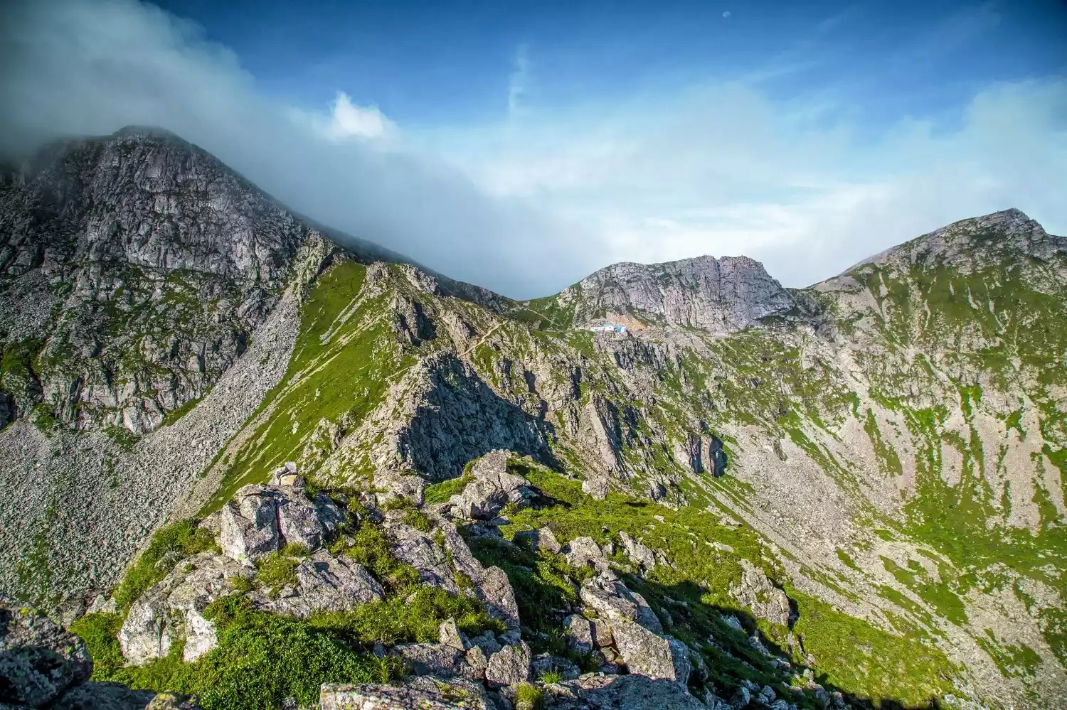 Sanhe Palace is only 5km away from Nantianmen, but it is nearly 1,100 meters higher. After leaving Laojun Temple, you have to pass by two iconic stone seas of Taibai Mountain. Huge stones are piled together, covering the entire mountain, like a sea of stones. Everyone can only use their hands and feet because there are no landmarks. It is very easy to get lost here. The stone sea is very steep, as if you have to move over it bit by bit. When you arrive at the Nantianmen accommodation, it is almost dark.