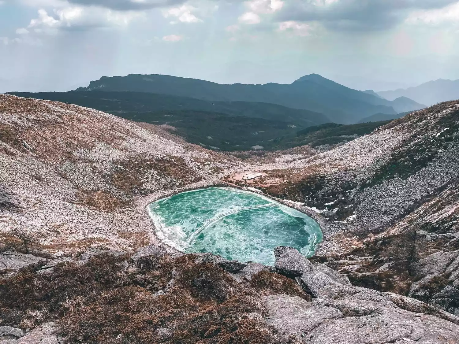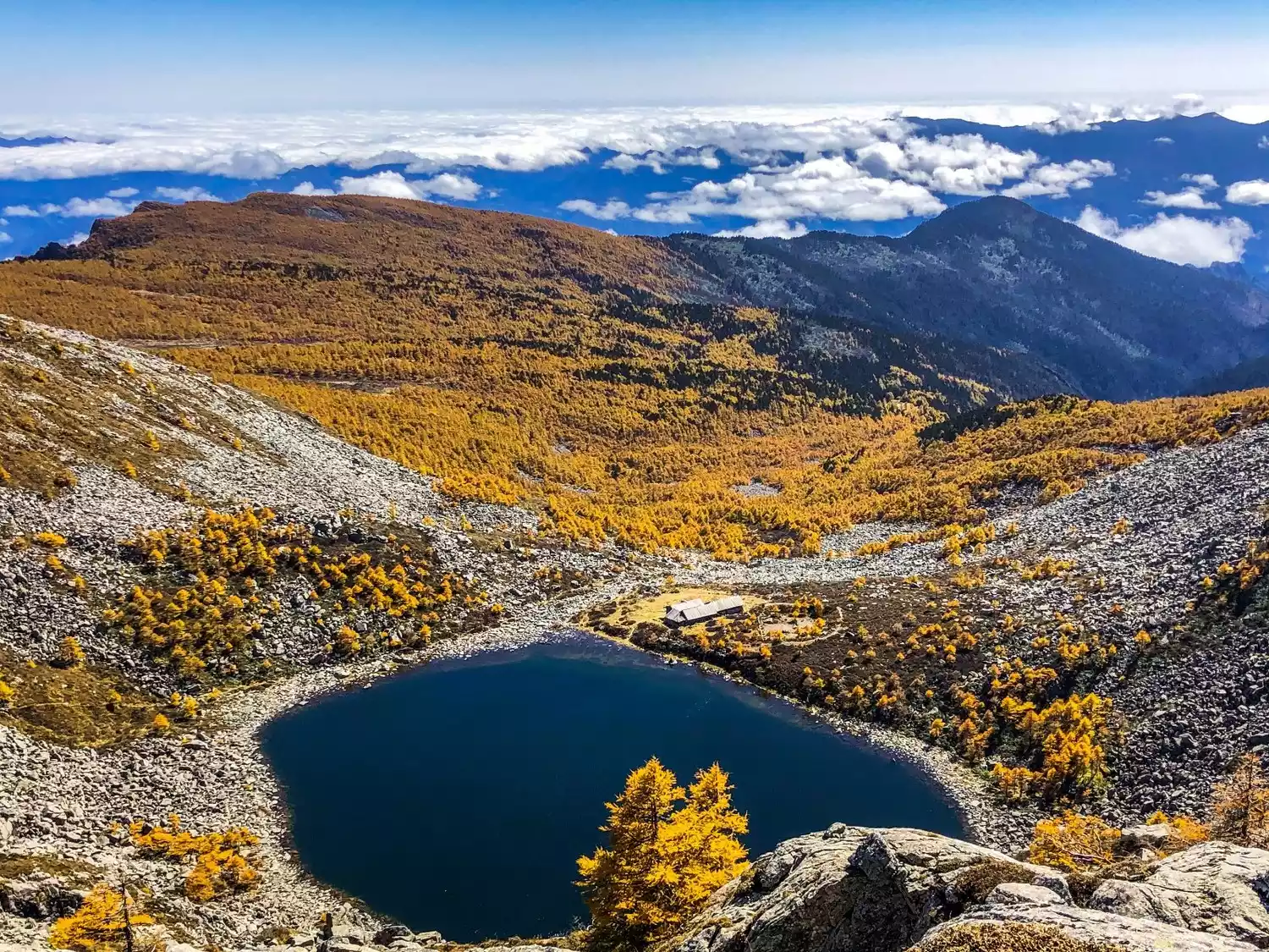 There are many alpine lakes in Taibai Mountain, the largest of which is the Jade Emperor Pond, covering an area of about 90,000 square meters. The vegetation here is getting less and less, and it is all a huge sea of rocks. At this time, you can see an alpine lake every 100 meters you rise, but this is already a high altitude area of 3,300 meters, and the continuous ascent makes people walk slower and slower!