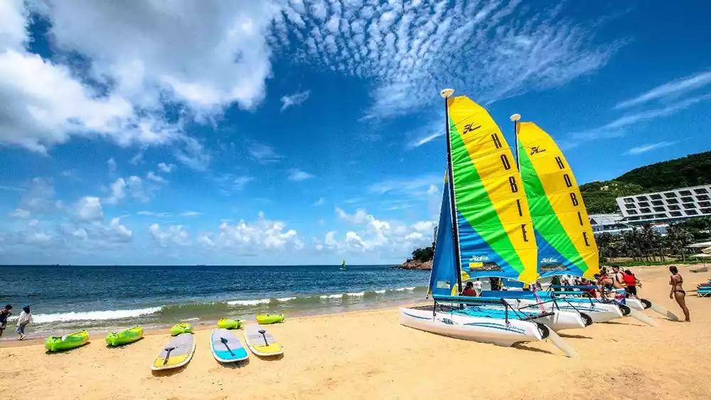 Check out these romantic beachfront attractions, including Flying Rock, Honeymoon Park, and the Pure White Bookstore. The island boasts three beaches: Nansha Bay, Dazhu Bay, and Xiaozhu Bay, each boasting clear waters perfect for playing in the water and enjoying water activities.