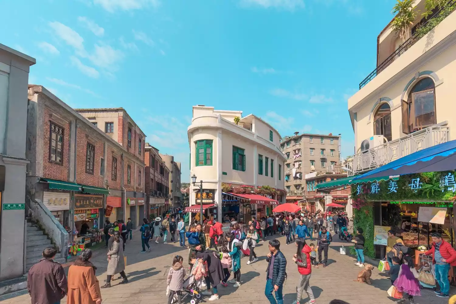 One end of Zhongshan Road connects to the Wuzhou Hotel in Xiamen, while the other leads to the azure sea, overlooking Gulangyu Island, the Garden on the Sea. The arcade buildings on Zhongshan Road are a hallmark of Xiamen's architectural culture, most of which were built in the 1920s with investment from returned overseas Chinese.