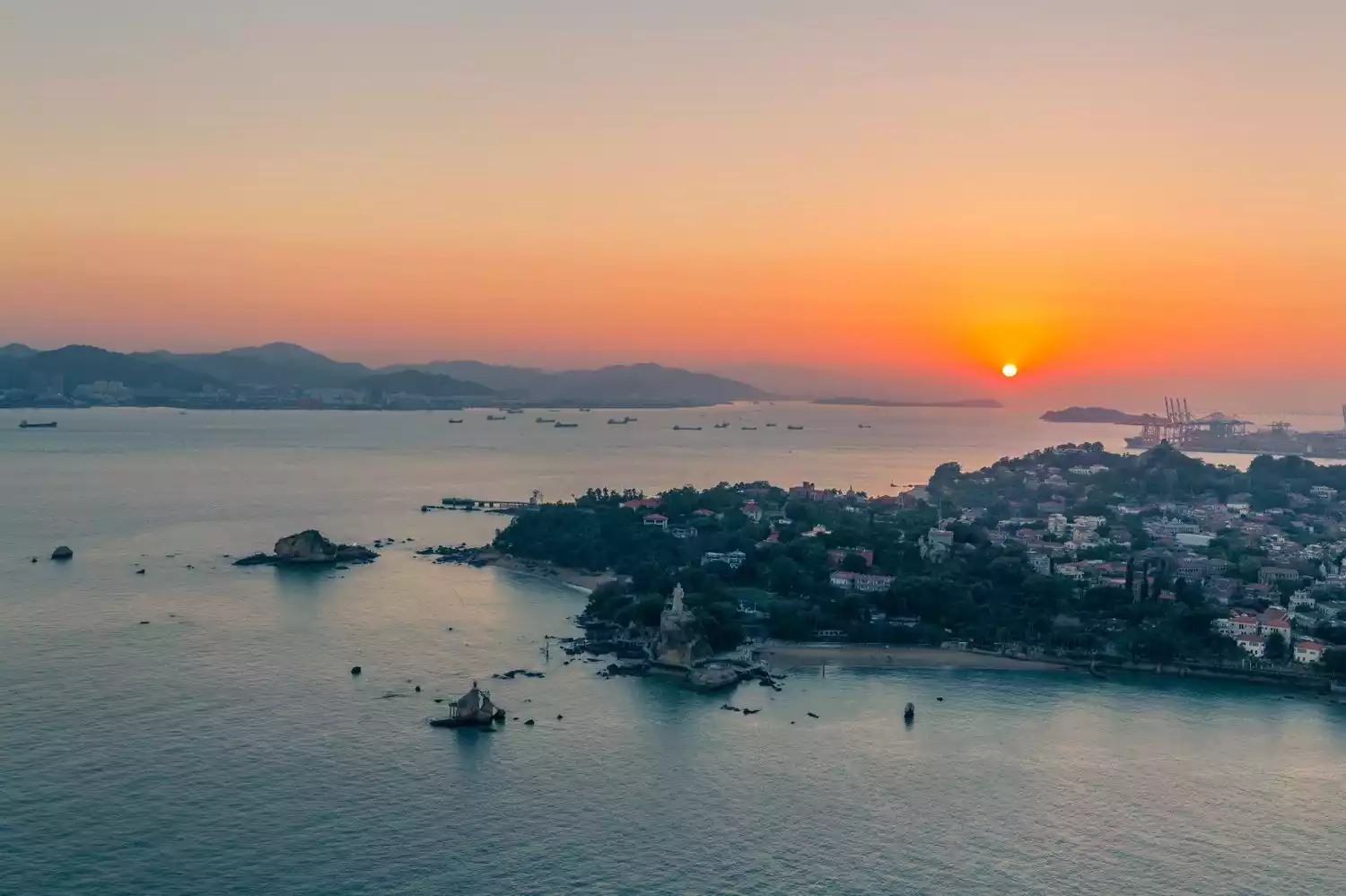 Siming District boasts a long, deep-water coastline, azure seas, azure skies, golden beaches, wondrous rock formations, lush greenery, fresh air, and a pleasant climate. These unique natural conditions make Siming District one of China's most beautiful harbor districts.