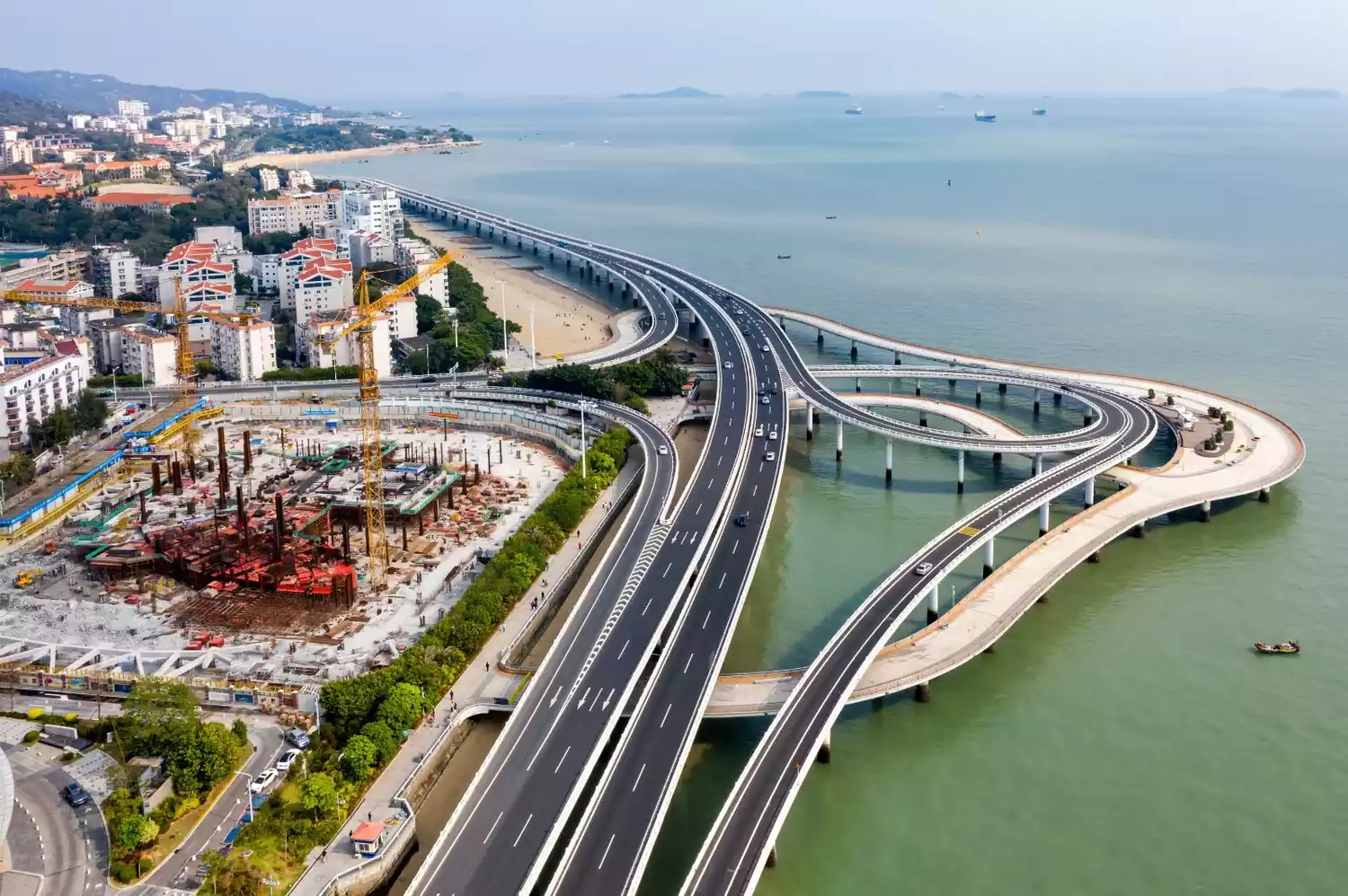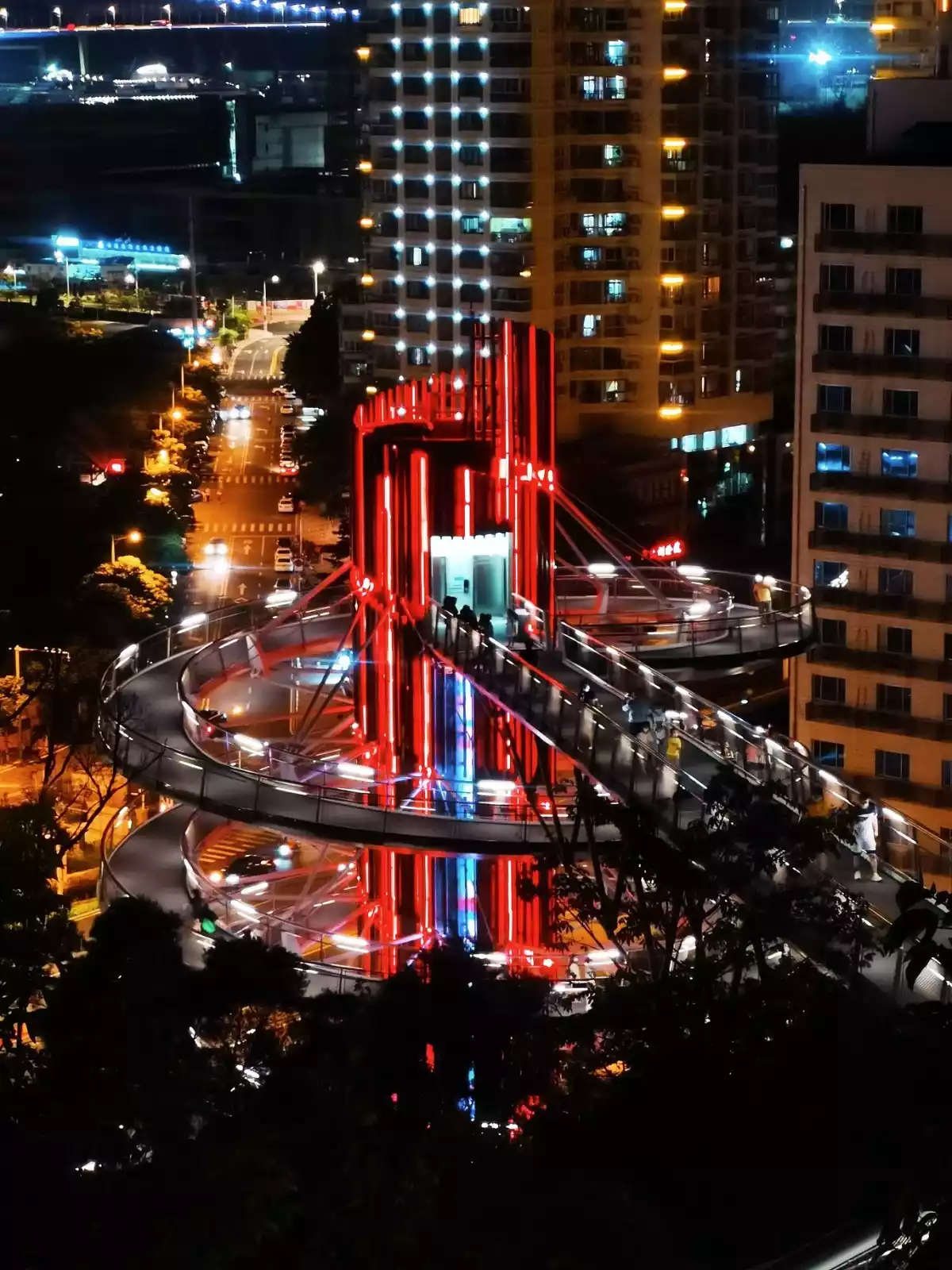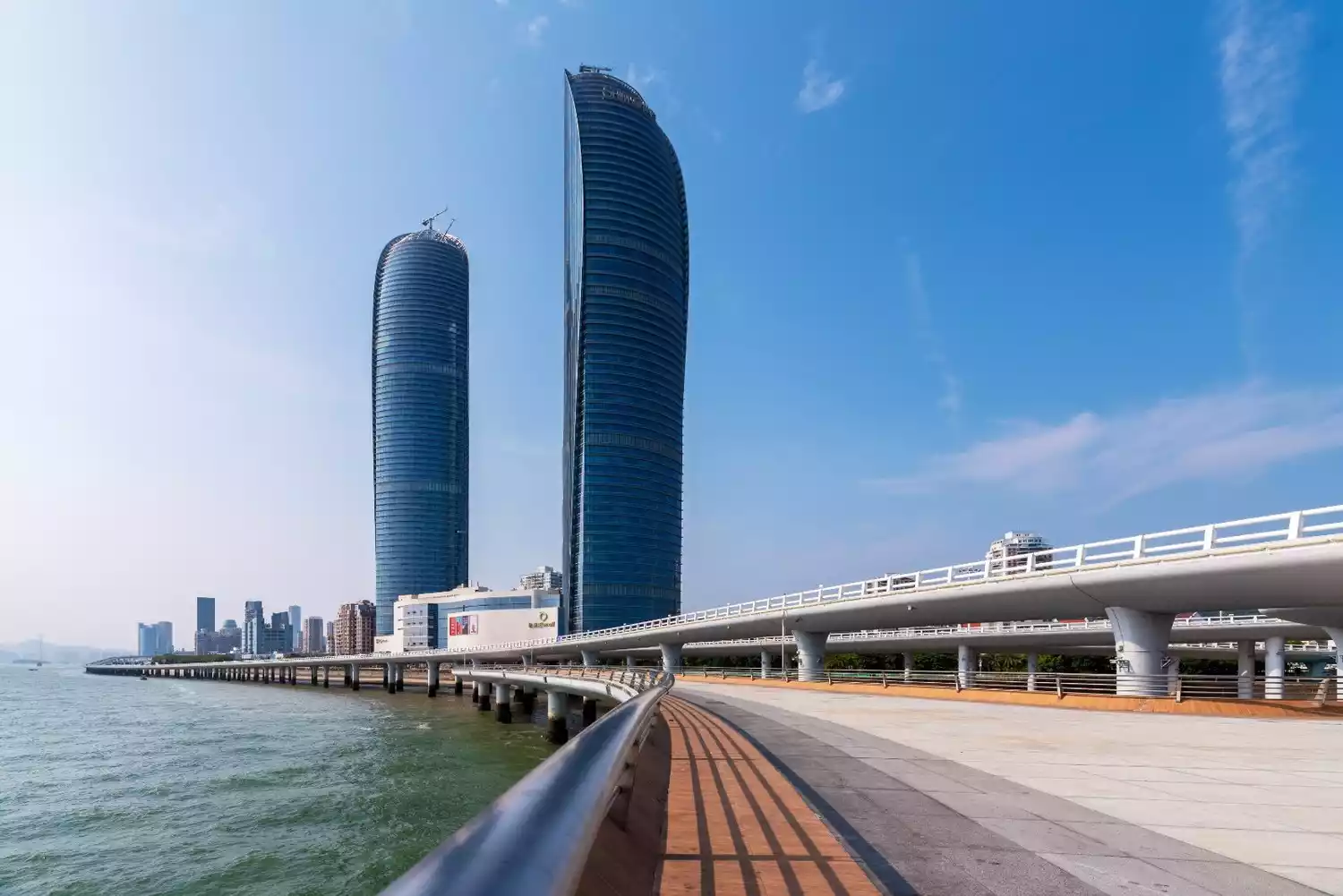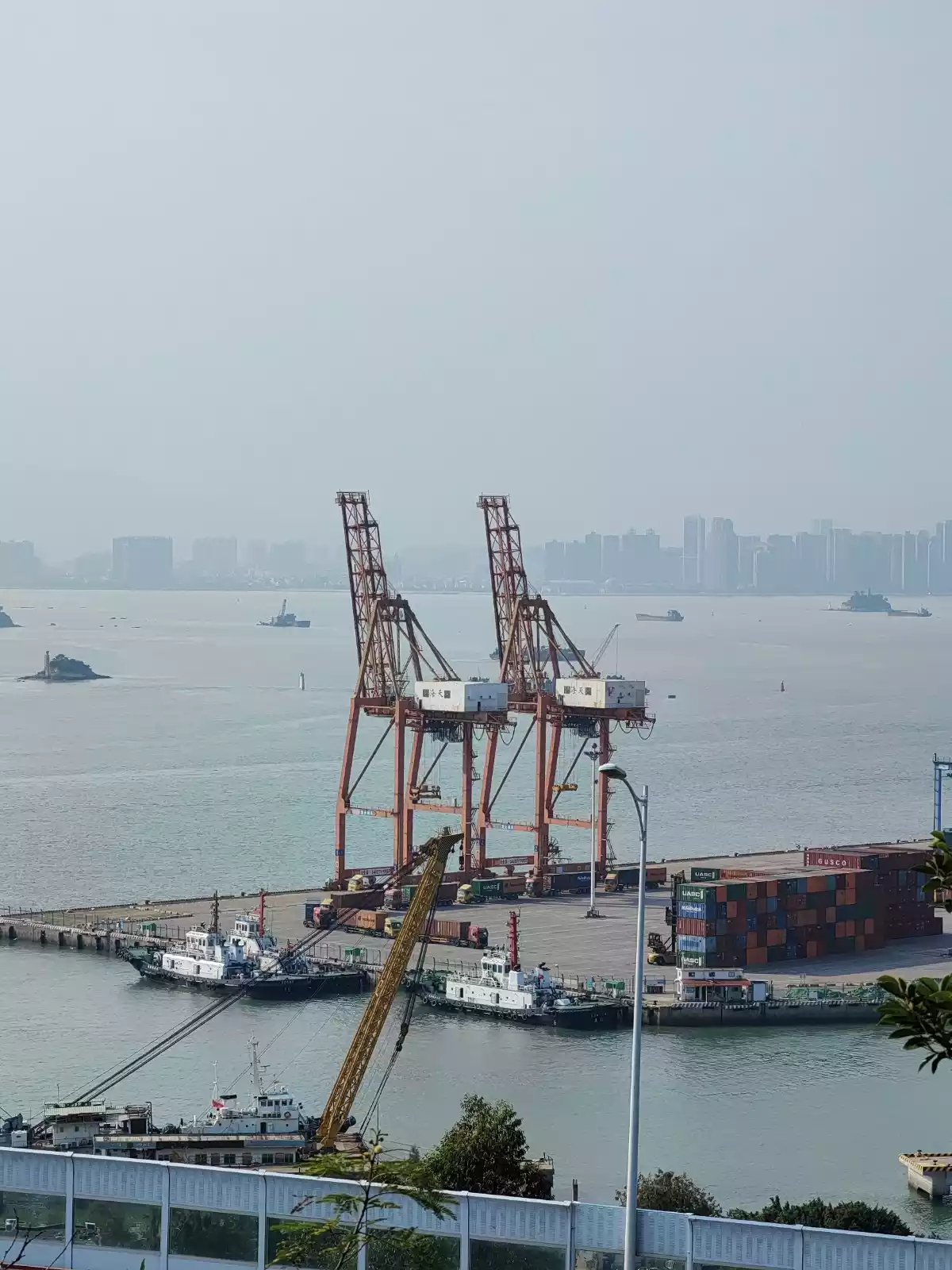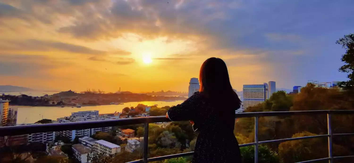 From here you can overlook the entire Haicang Bridge, most of the Dongdu Port, and you can also see the Sea World Ferris Wheel.