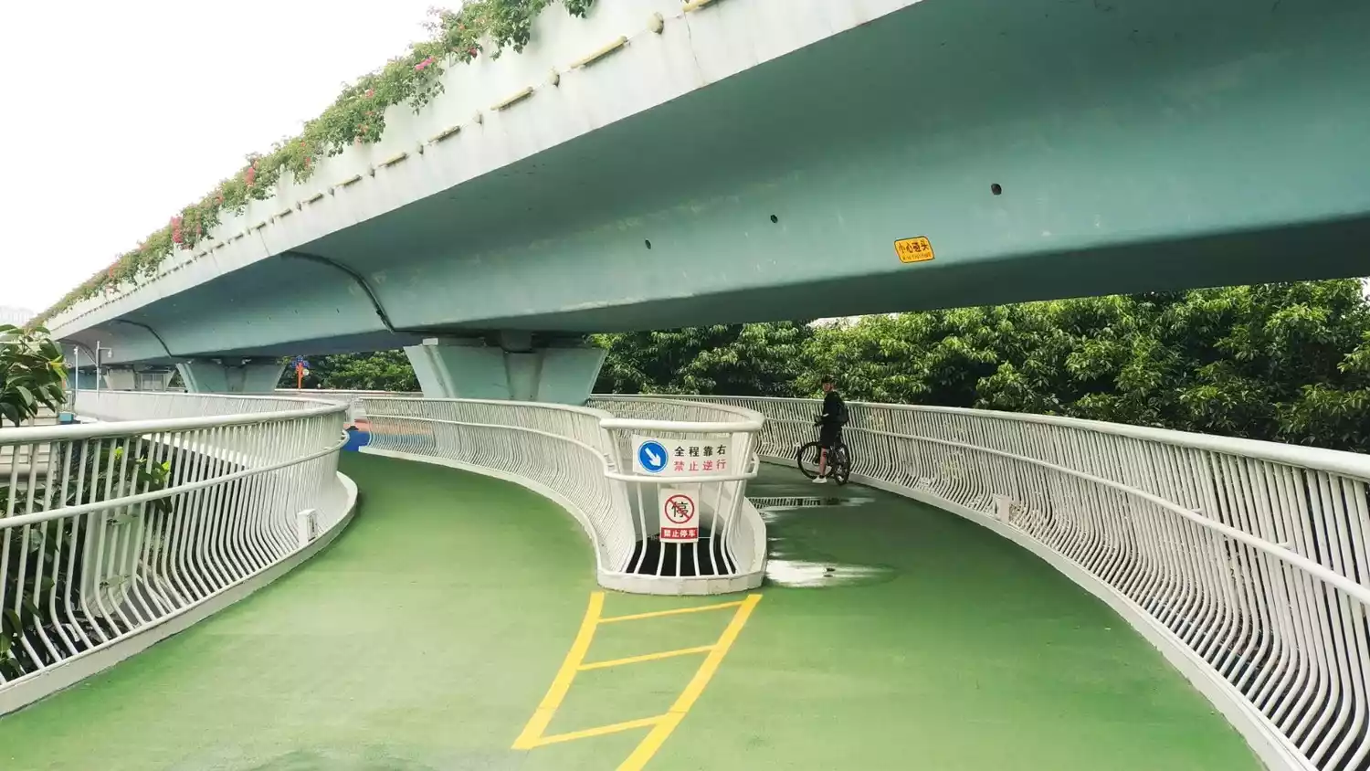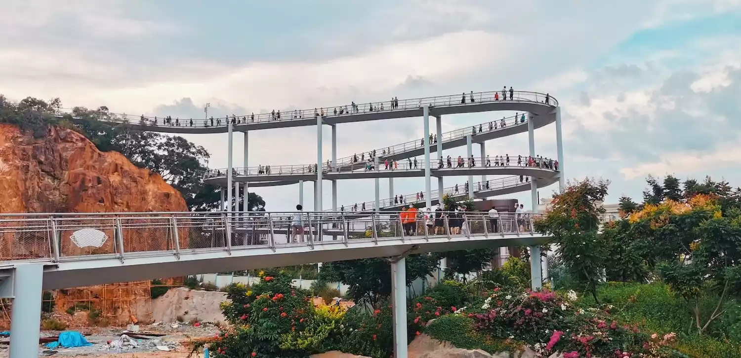 Xiamen boasts a 7.6-kilometer-long aerial bike path, one of the longest in the world and the only one of its kind on either side of a dedicated BRT elevated highway. This unique path is suspended approximately 5 meters above the ground, making it a true aerial bike path.