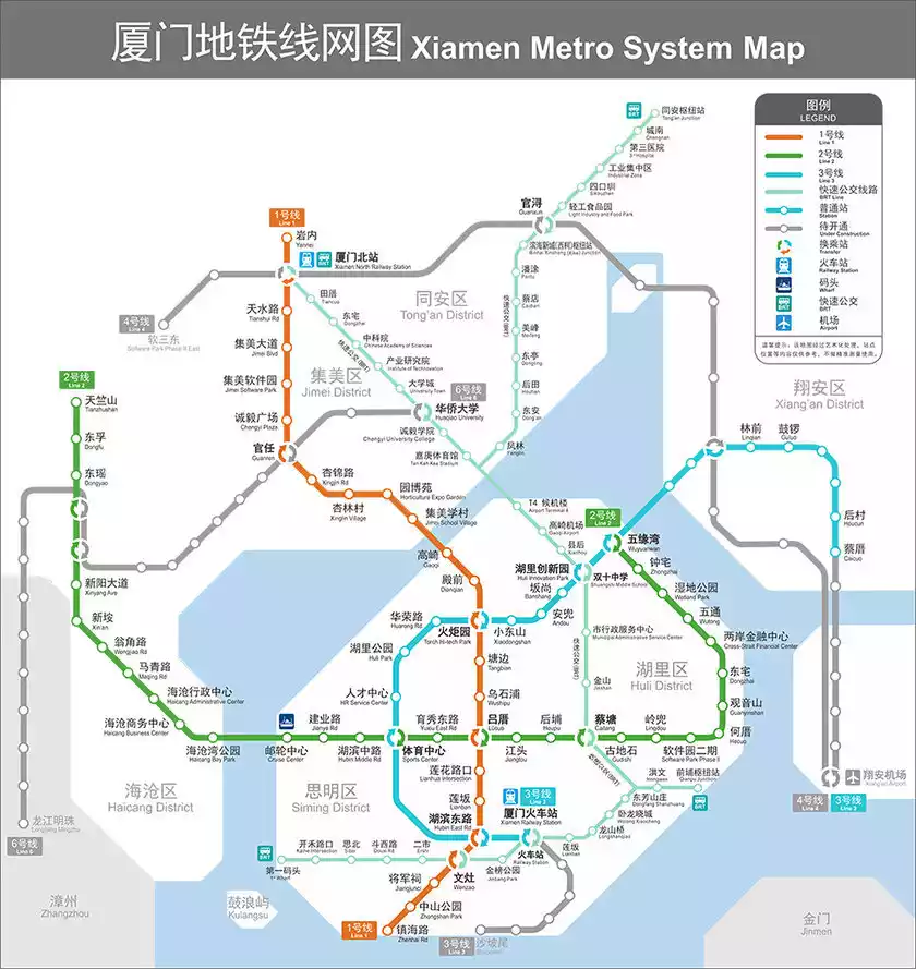 With the intersection of BRT and subway, you can basically reach the main tourist attractions in Xiamen.