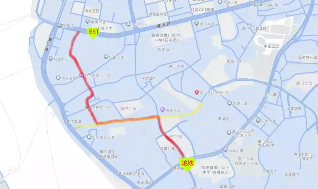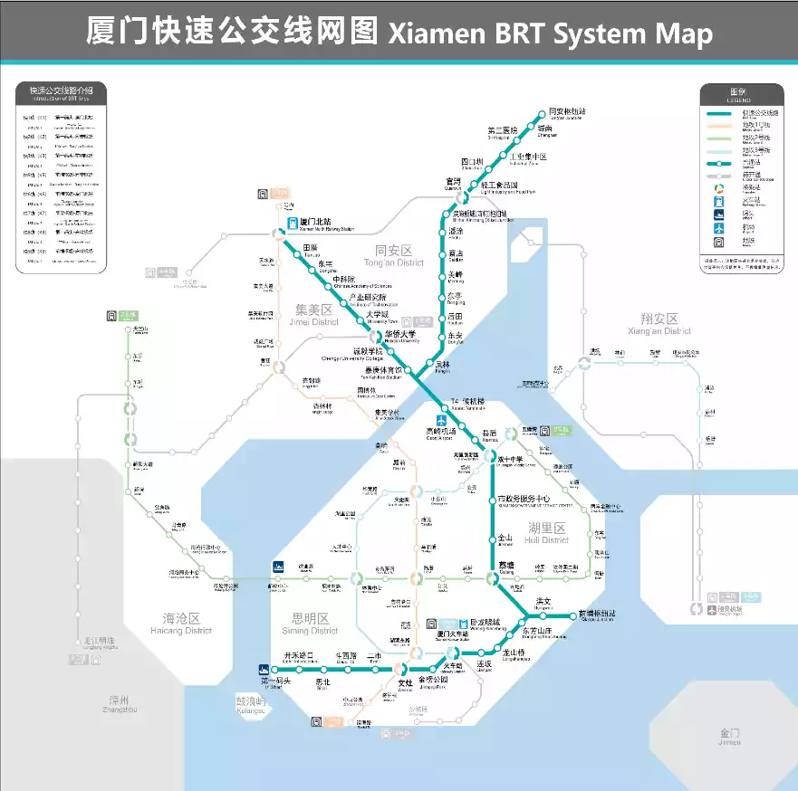 In Xiamen, I think the subway and BRT are the same type of transportation. The reason is that Xiamen BRT is the first rapid bus system in China to adopt an elevated bridge model. Because it is basically a separate elevated bridge throughout the entire route, and the frequency is relatively fixed, it is not disturbed by traffic lights and traffic jams along the way, and the operating hours are as reliable as the subway, so the subway and BRT can be regarded as the same means of transportation.