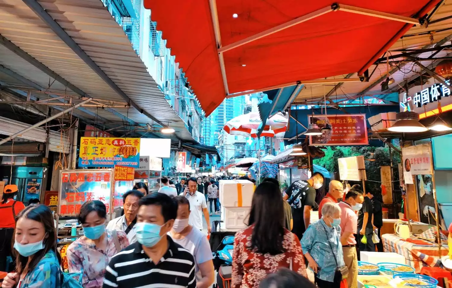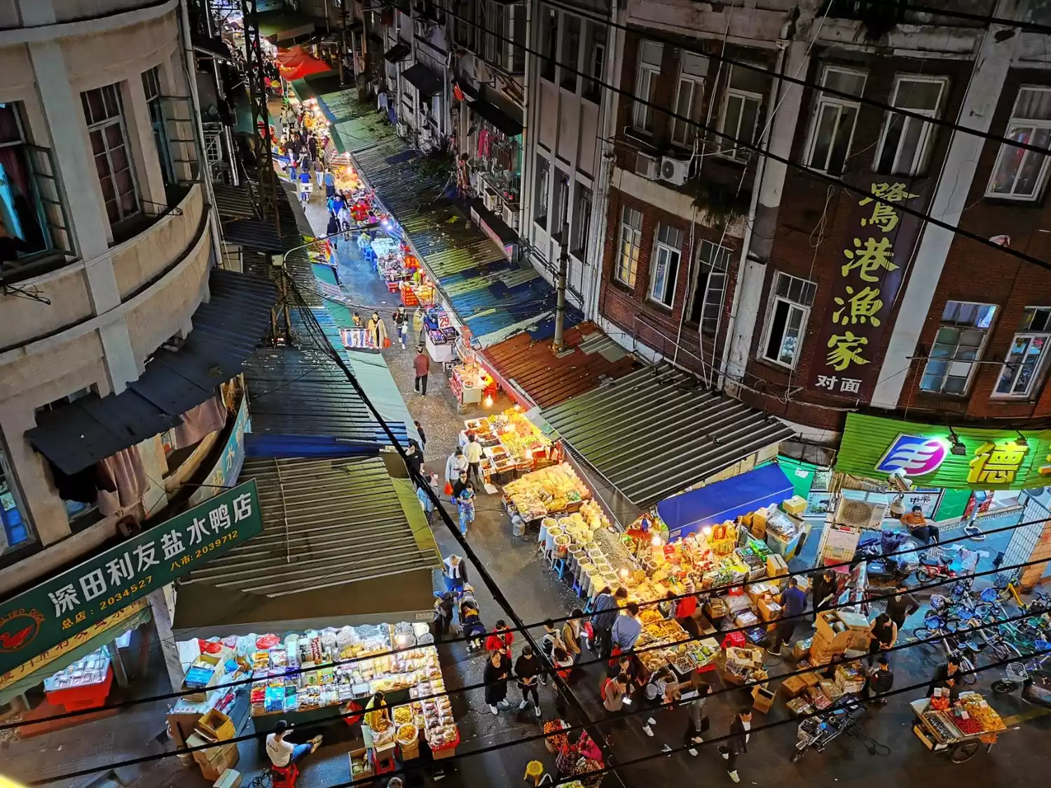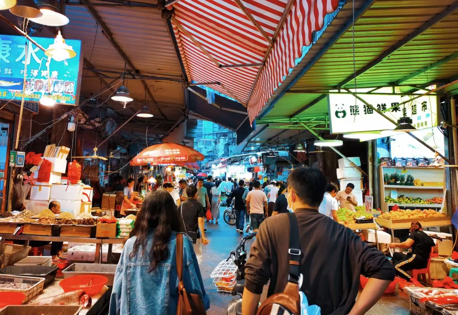 Seafood, vegetables, fruits, small sundries and various snack stalls are lined up in the narrow streets and under the arcades.