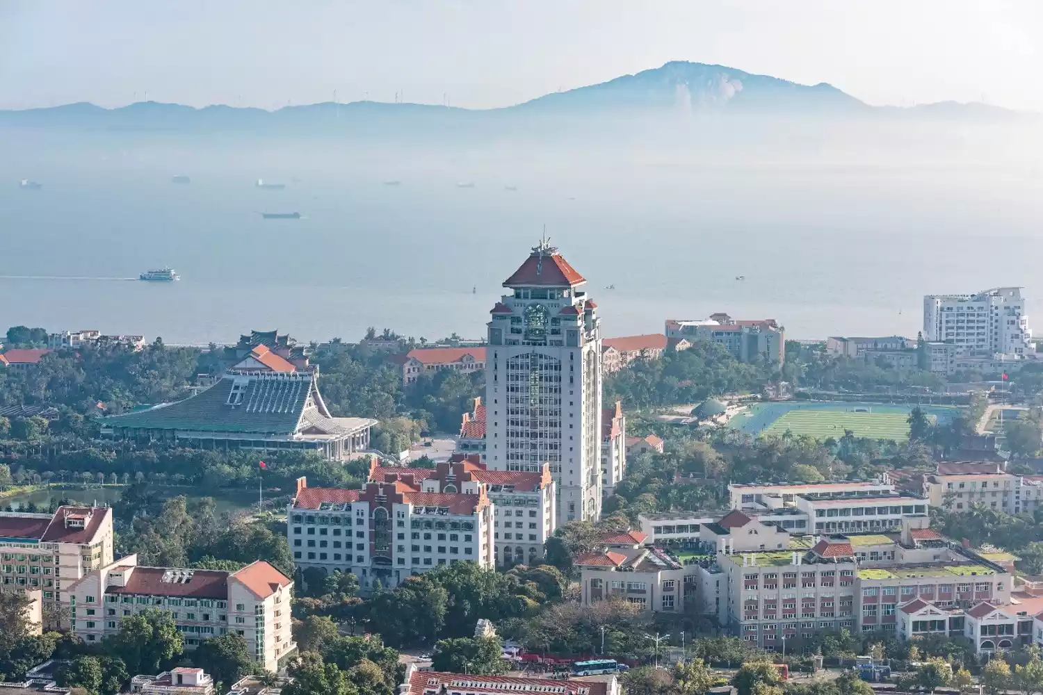 The South Gate was completed in 2017. Behind it, a statue of Tan Kah Kee stands proudly, overlooking the distant sea, as if conveying a magnificent vista. This world-class university has fulfilled Tan Kah Kee's vision: "Foreign ships sailing through Xiamen Port will be able to see this magnificent institution from the sea."