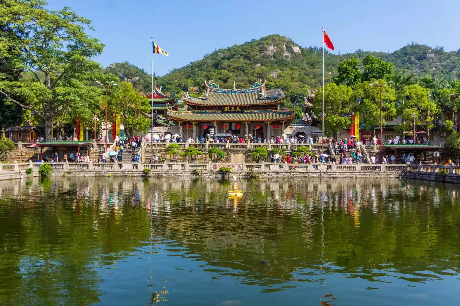Nanputuo Temple, originating in the late Tang Dynasty, was originally named Sizhou Temple. Over time, it was renamed Puzhao Temple during the reign of Emperor Zhiping of the Song Dynasty. However, during the early Ming Dynasty, the temple fell into disrepair and was not rebuilt until the reign of Emperor Kangxi of the Qing Dynasty. Dedicated to Guanyin Bodhisattva, Nanputuo Temple, similar to the Guanyin Dojo on Putuo Mountain in Zhejiang Province, earned its name due to its location south of Putuo Mountain. It has become a sacred Buddhist site in southern Fujian.