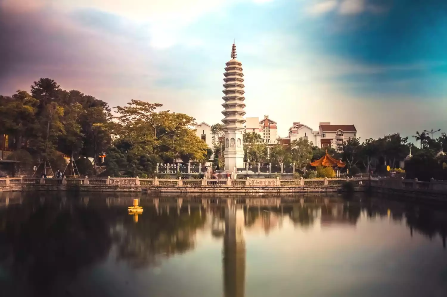 There are currently primary and secondary schools around the Dragon Boat Pond, and their Kah Kee architectural style was funded and built by Mr. Tan Kah Kee.