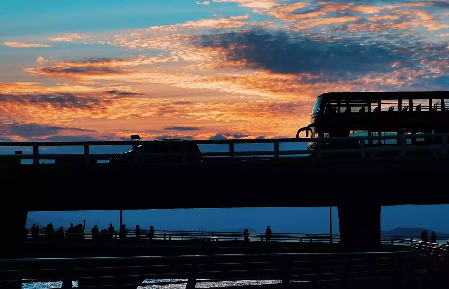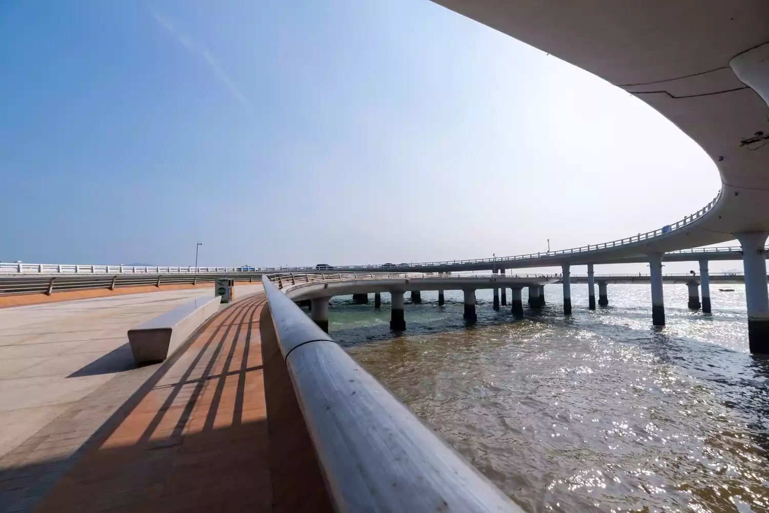 The viewing platform is located offshore between the Yanwu Bridge and the Yanwu Road overpass, connected to the coastal promenade by three plank roads. Characterized by a curved design with no right angles, the platform gently extends toward Xiamen Bay. From the Yanwu Bridge viewing platform, you can take in a 360-degree panoramic view of the vast seashore, sunrises and sunsets, and the romantic Qin Island.