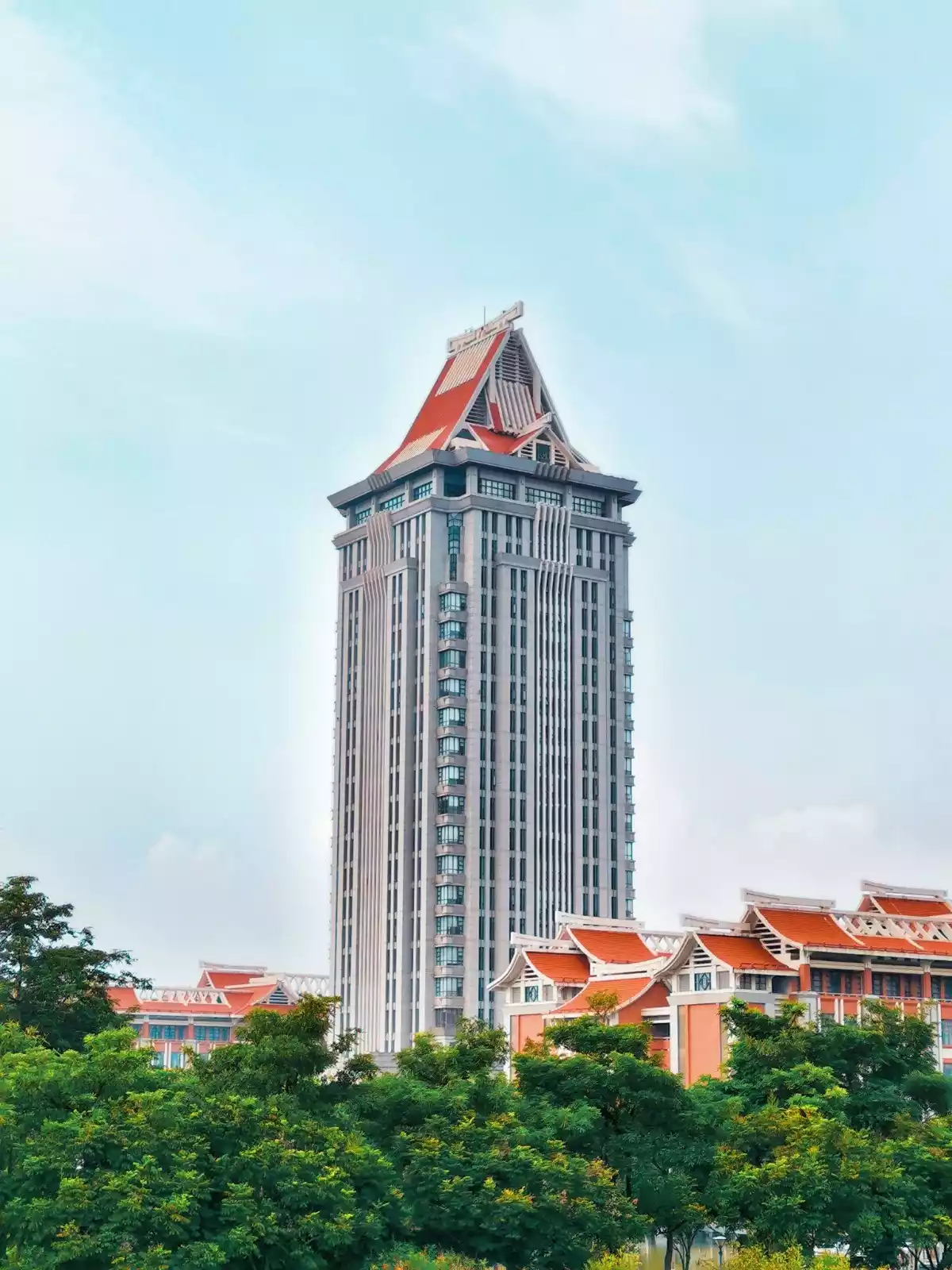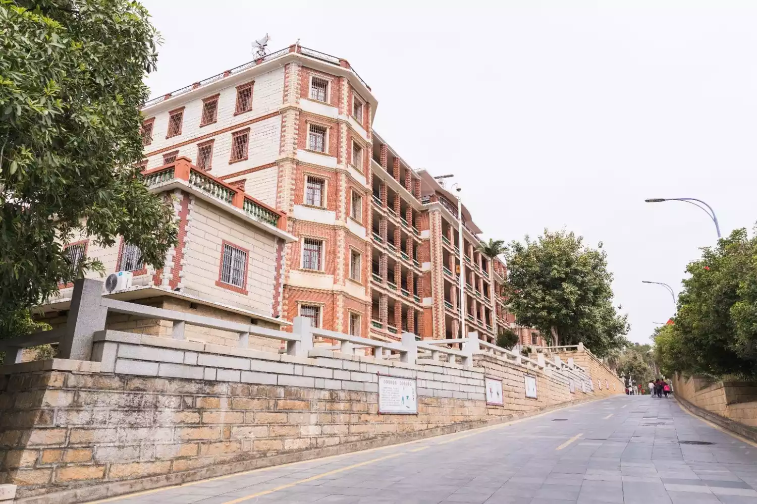 The buildings on campus are arranged in a straight line, a typical layout of one main building and four secondary buildings. The main building, Qunxian Building, is named after the line in the poem "Preface to the Lanting Collection," which reads, "All the wise men have arrived, young and old have gathered together." Its architectural style is heavily influenced by traditional southern Fujian dwellings.