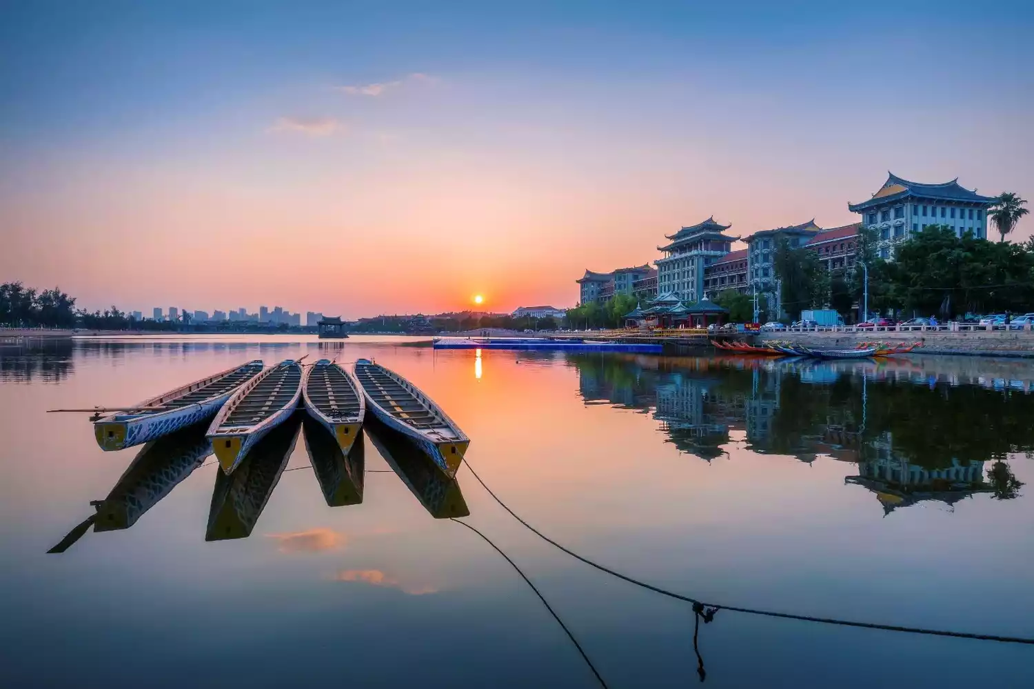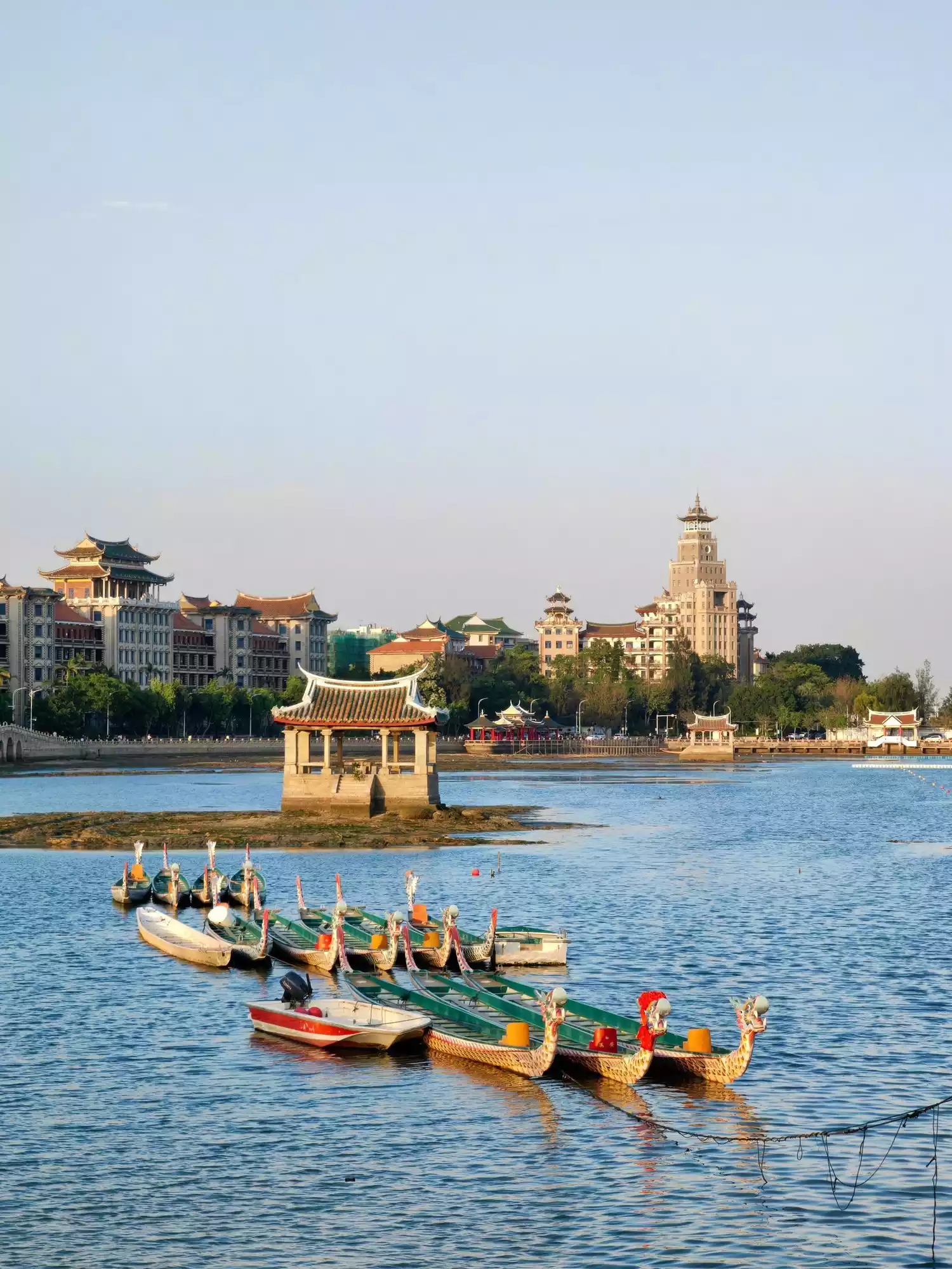 The Dragon Boat Pond, also known as the Big Pond or Outer Pond, is located south of Daonan Tower. With a circumference of over 1,000 meters and an area of approximately 130,000 square meters, it was originally formed in 1950 by Tan Kah Kee, who built embankments on the Xiamen beach to reclaim the Outer, Middle, and Inner Ponds. After 1954, Tan Kah Kee began organizing dragon boat training and competitions for villagers, teachers, and students. In the mid-to-late 1950s, he continued to improve the embankment and surrounding landscape, making it an ideal venue for competitions. The scenic area is a great place for enjoying the breeze, the scenery, and for a stroll or exercise.