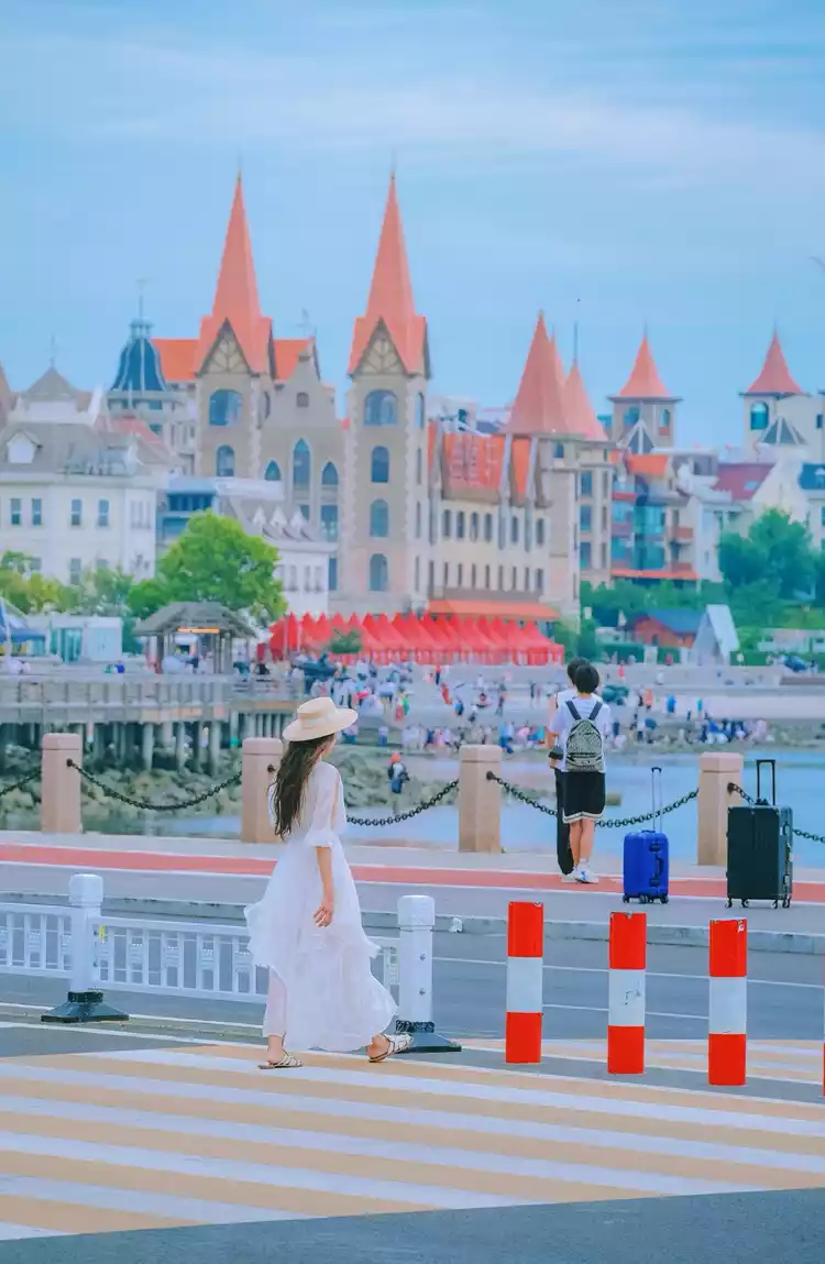 On the second day of the trip to Yantai, Xiao Yao came to Haichang Fisherman's Wharf on Binhai Road. This "Prague on the Sea" is beautiful and romantic. European-style buildings stand under the blue sky and white clouds, giving you the illusion of being in Europe every minute.