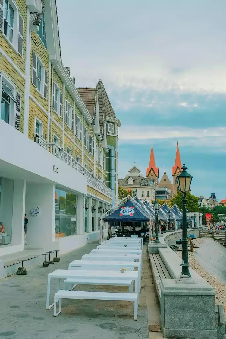 The best vantage point for photographing Fisherman’s Wharf is the zebra crossing on Binhai Middle Road. You can sit on the stone pier or cross the sidewalk, feeling relaxed and casual.