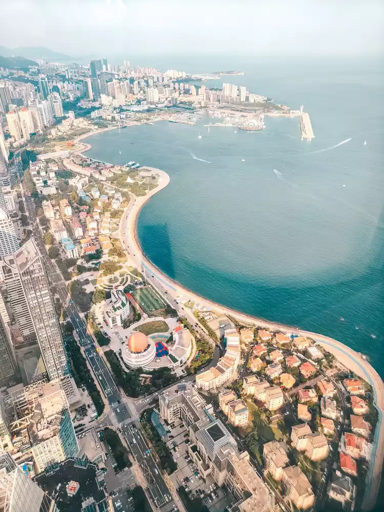 The Yunshang Haitian City Observation Deck is located on the 81st floor of Qingdao Haitian Center. It takes less than a minute to get there by elevator. The Observation Deck has 360-degree floor-to-ceiling windows and three diamond corners of suspended glass. It overlooks the entire cityscape around Qingdao May Fourth Square and the vast ocean, with an excellent viewing angle!