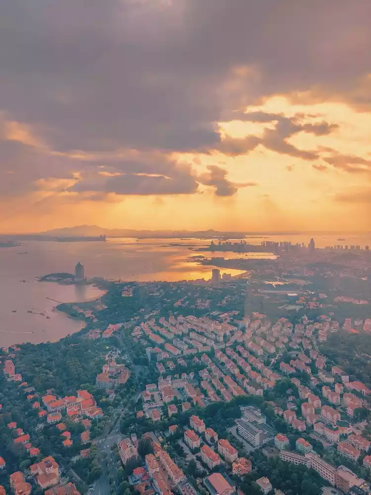 If you can only visit one place in Qingdao, you must not miss the Yunshanghaitian Scenic Area, which overlooks the entire Qingdao and the endless sea at an altitude of 330 meters. The second stop of Xiaoyao's Qingdao trip was Yunshanghaitian, where she encountered an intoxicatingly beautiful sunset.