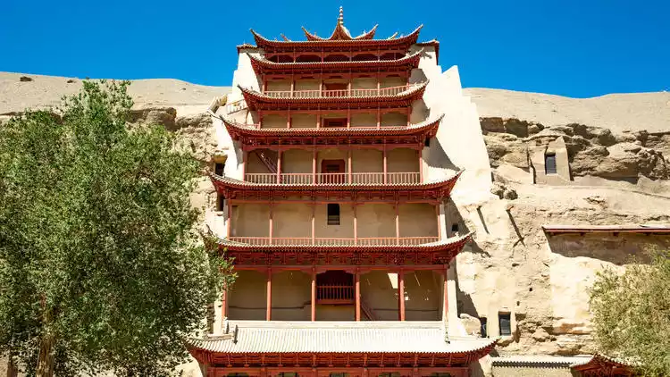 Mogao Grottoes are located in Dunhuang at the western end of the Hexi Corridor. It took a thousand years from the Sixteen Kingdoms period to the Yuan Dynasty to be built. This "nine-story building" is rare in China and the world. It is built against the mountain and is majestic. It is particularly dazzling among the grottoes. Its towering spires, staggered eaves, and the clanging of iron horses have become one of the symbols of Mogao Grottoes.