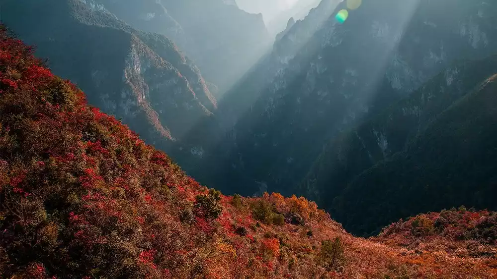 The Three Gorges' autumn scenery is ablaze with crimson leaves, which bloom for three months from November to January. Climb Taozi Mountain and hike the Goddess Sky Road to experience the splendor of the Three Gorges from a bird's-eye view! Enjoy the scenery from multiple angles, both on RMB notes and in movies.