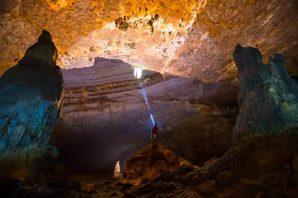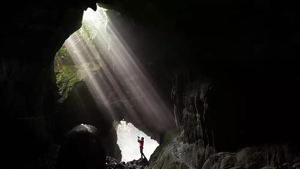 Explore the center of the earth in northern Guangxi and uncover the mystery of the world's largest tiankeng complex. Fengzidang has 1 cave and 3 tiankengs, with a 45-meter drop that can be reached by rope. Feel the magical Jesus light in Tyndall Cave.